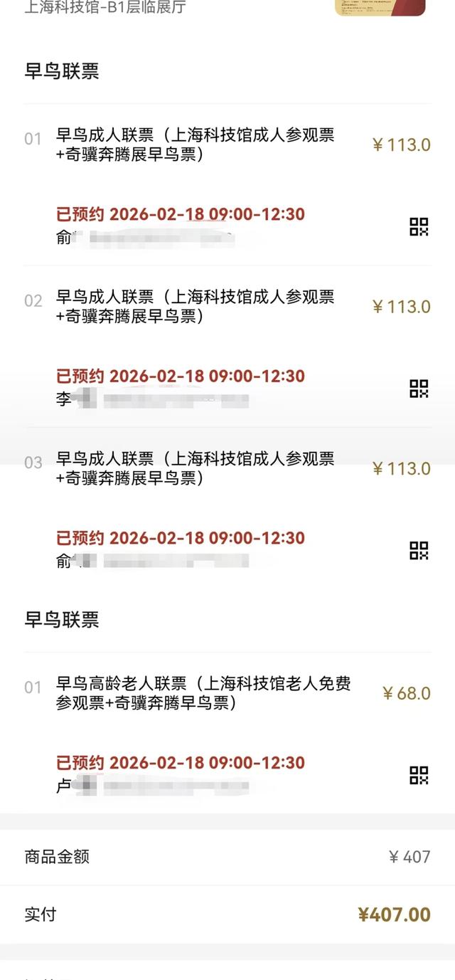 俞先生一家四口早早订好了春节假期上海科技馆参观联票。