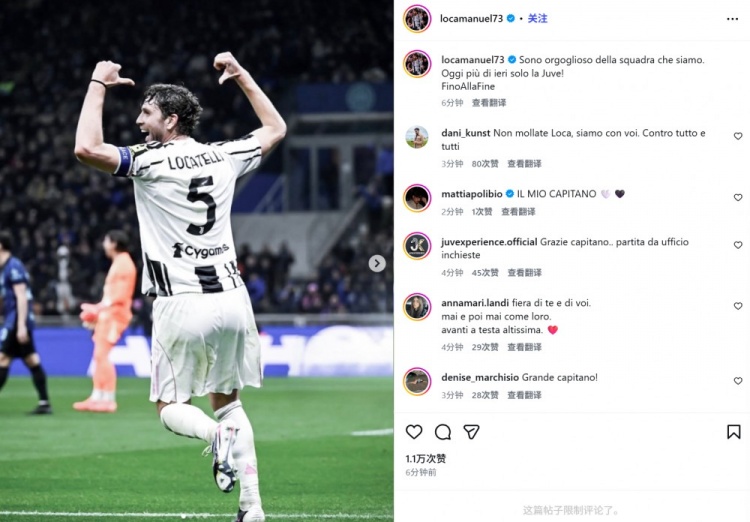 队长尽力局!洛卡特利社媒发文:今天的尤文比昨天更加骄傲