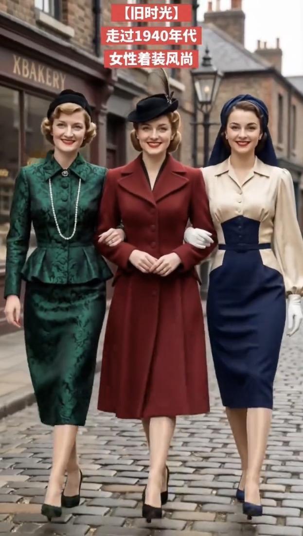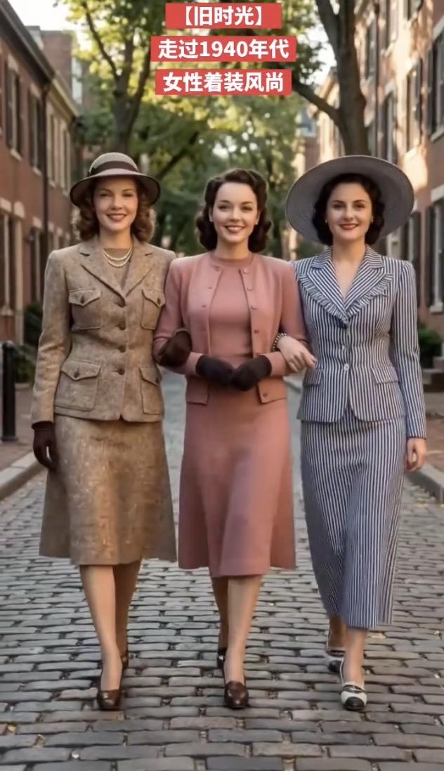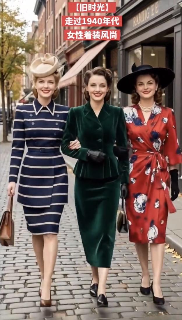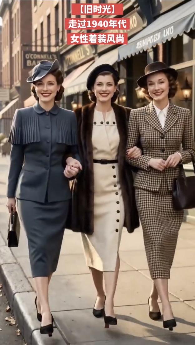 《经典定格:1940年代女士群像里的18套永恒风范》 一位位异国女子正款款走来, 当镜头将她们定格, 三三一组,便是一个时代的优雅侧写。 我们看到的不只是服饰, 更是一个群体在特定年代里的共同选择: 利落的垫肩, 是她们走入职场与社会时撑起的肩膀; 剪裁合身的连衣裙, 在有限布料中依然勾勒出尊严的线条; 每一顶礼帽的角度, 每一枚胸针的位置, 都在诉说—生活可以精简, 但体面不可缺席。 她们的穿着并非追逐潮流, 而是以得体为甲,以从容为刃: 把衬衫烫出棱角,将发丝妥帖归位, 用最朴素的方式, 守护着生活最后的仪式感。 这六组影像,十八个身影, 共同编织出一曲无声的和声: 优雅不是独唱,而是一种能彼此映照、 在艰难岁月里依然并肩站立的精神面貌。 时尚易逝,风骨长存。 她们穿越时光告诉我们: 真正的风格,是在任何环境下, 都能活出自己从容不迫的形状。