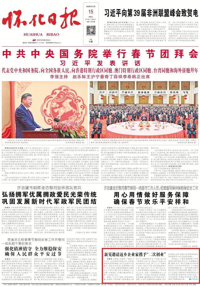 怀化日报全媒体讯动起来、快起来、干起来。2月13日,在新春佳节到来之际,新晃邀请50多名异地湘商、返乡企业家举行迎县庆、贺新春座谈会,紧紧围绕实施“十五五”规划、迎接新晃侗族自治县成立七十周年主题,结合开放赋能、产业兴县、和美侗乡三大要点建言献策,汇聚“二次创业”合力。