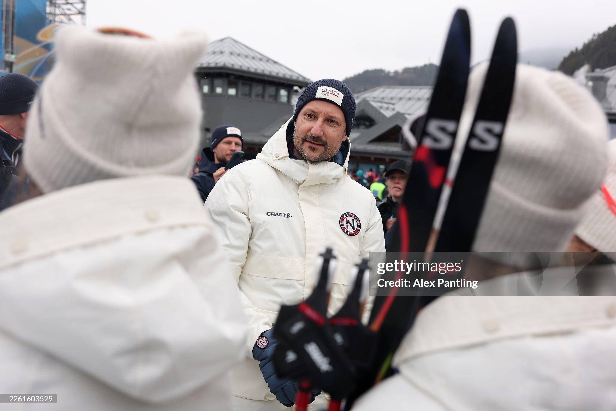 挪威王室 🇳🇴2月14日,哈肯王储观看冬奥会4×7.5公里接力赛和男子大跳台
