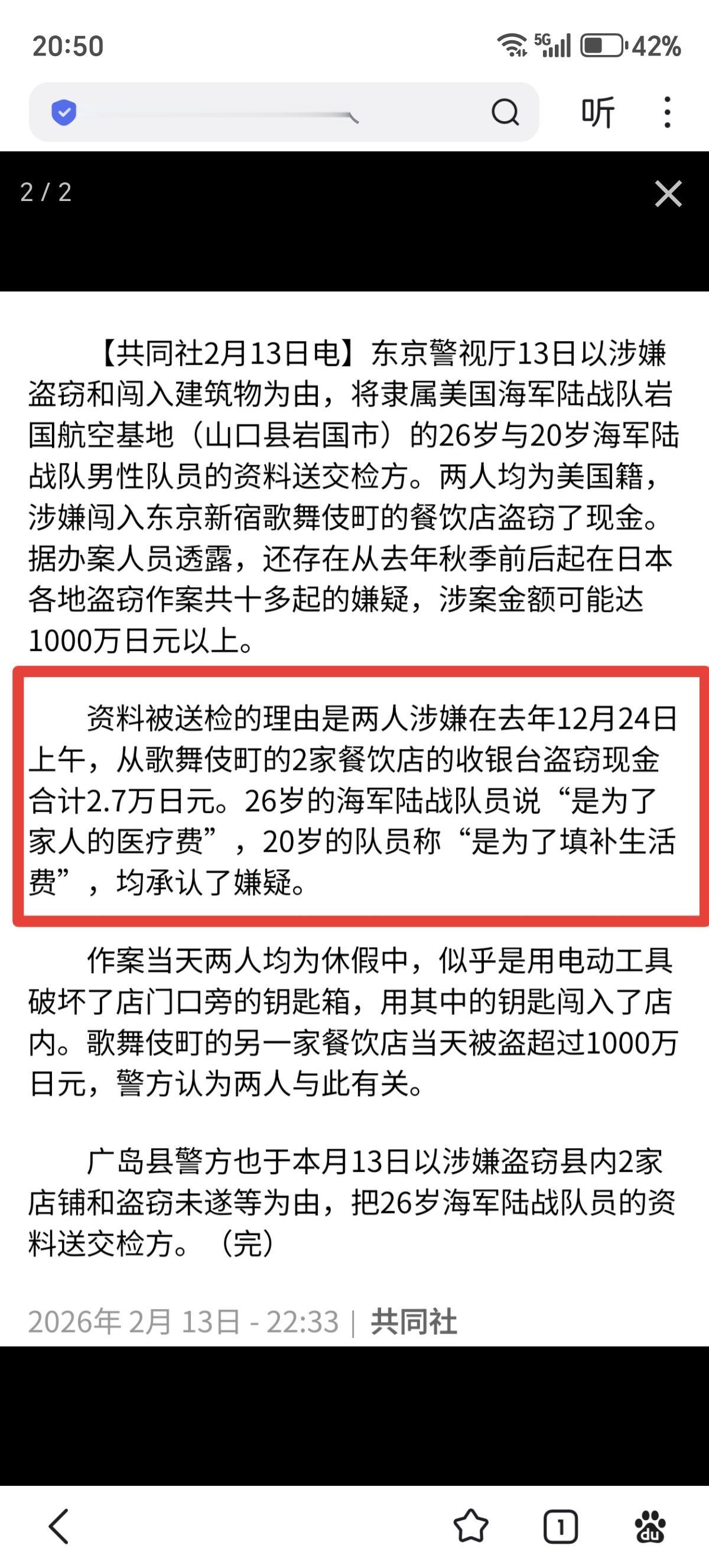 美国斩杀线扩展到驻日美军了?两名驻日的美国海军陆战队员在东京新宿歌舞伎盗窃,其中一人表示是为了家人的医药费,另一人表示是为了填补生活费