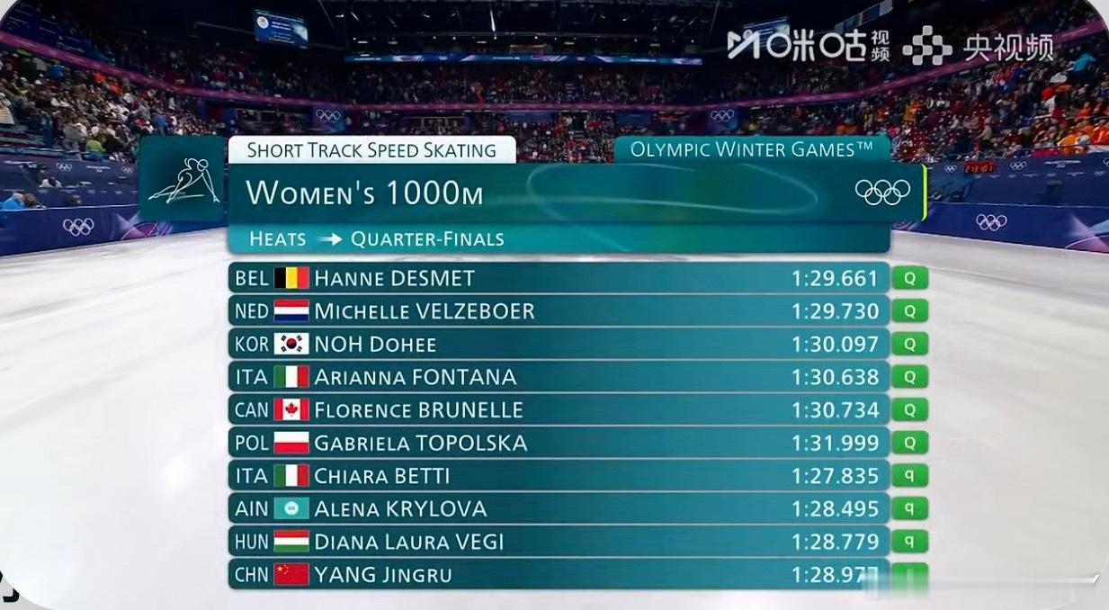公俐 张楚桐 杨婧茹(q)均晋级女子1000米1/4决赛全民聊冬奥