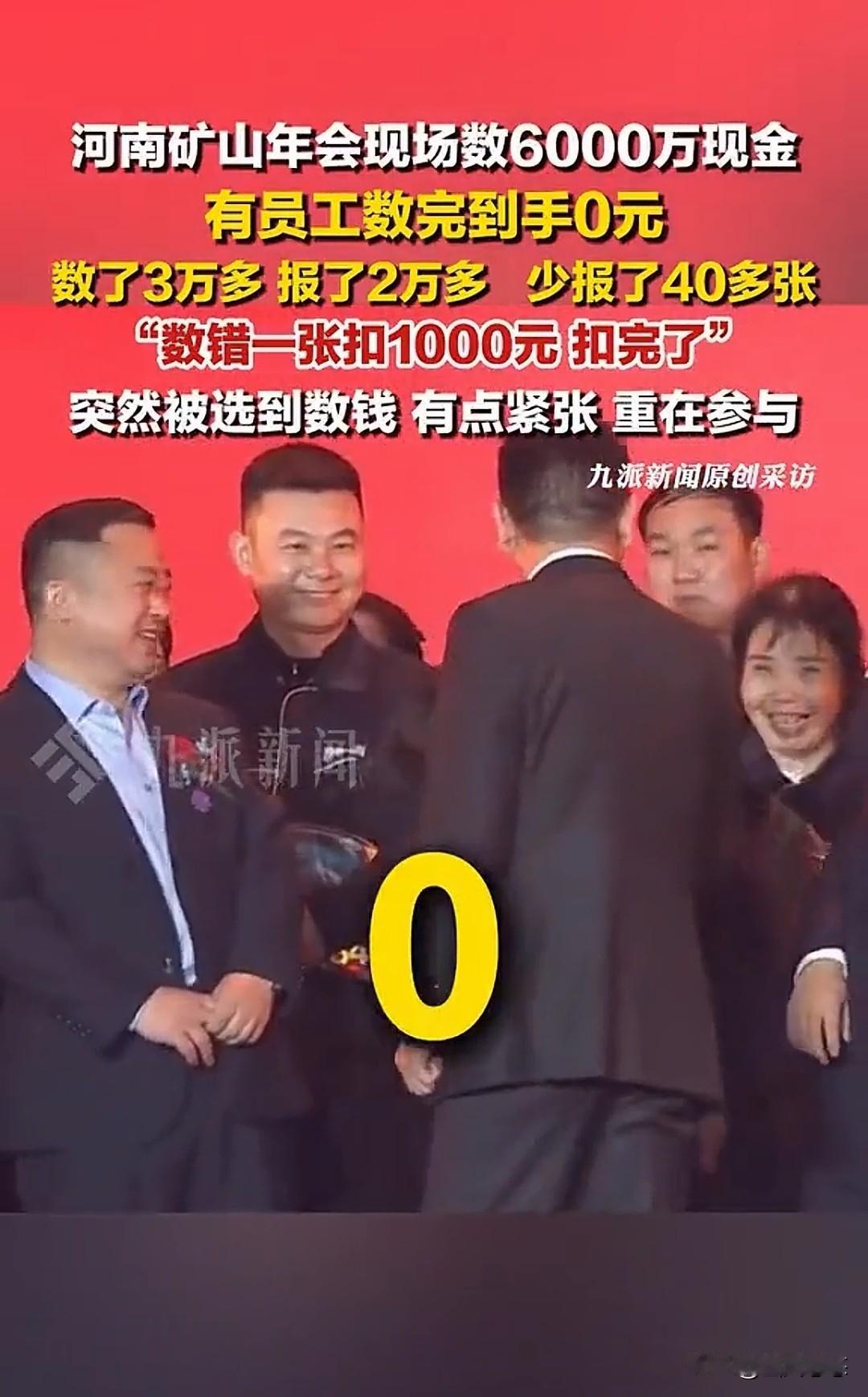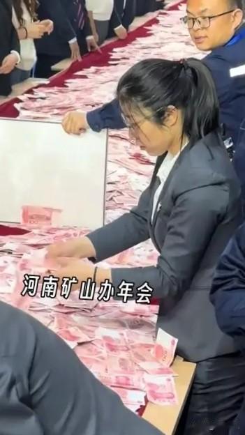 被网友赞誉为“尊重劳动的标杆”,与胖东来并称“河南双杰”的河南矿山起重机有限公司,于腊月二十六(2月14日)举办公司年会。年会现场摆了800桌宴席,七千多名员工齐聚一堂。60多米长的桌子上,铺满了6000万元百元大钞。员工们排队上台,在规定时间内,数多少拿多少。现场点钞声哗啦啦响个不停,欢声笑语也不绝于耳。有人在15分钟内准确无误地数出了6万多元,也有人数得不尽人意,最终得了0元(规定数错一张罚款1000元),即便如此,他们依旧满脸笑容(自我调侃尬笑)。 有人疑惑为何不直接打卡转账,既快捷又安全。老板崔培军解释道:“打到卡里只是个冷冰冰的数字,年会现场发钱会更有热闹氛围。年轻人压力大,能帮一点是一点。我自己生活也挺好,存那么多钱不如分给大家。” 一位现场的老员工,攥着一沓刚数完的现金,手都有点颤抖。他拍照发进家里群,爸妈秒回:“真发钱啦?摸着是硬的不?” 河南矿山起重机有限公司是一家民营企业,坐落于河南长垣(中国起重机械之都)。公司主打桥门式起重机,产品广泛应用于厂房、港口、冶金、航天发射场、核电站等领域,能实现550吨重物定位精度±5毫米,打破了德国、芬兰等国外巨头在这一领域的垄断地位。 董事长崔培军秉持“挣一块分八毛”的经营理念,用现金发放年终奖的做法已延续20年,将大部分利润都分给了员工。公司不集资、不贷款,也永远不上市。 此次现金发放6000万,总共发放1.8亿。放眼全国企业家,谁能有这般豪气? 该公司几千名员工不用打卡、无需考勤,仅有12条管理规定,靠“以德治企”凝聚人心。员工的自驱力源于激励政策,人均产值超过行业均值两倍,堪称“高福利换生产力”的成功典范。