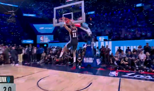 虎扑02月15日讯全明星扣篮大赛:凯沙德-约翰逊夺得冠军。