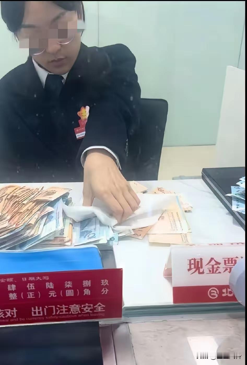 “视金钱如粪土”,这位“大小姐”在数钱的时候不敢上手拿,用纸巾包着,这样别别扭扭当着顾客的面是不是不好?要么带着手套,要么就直接上手,数完洗手就可以了! 真是小姐的身子丫鬟的命,如果家里真的有钱就在家里当大小姐了,不要出来吃苦耐劳,让能吃苦的事。