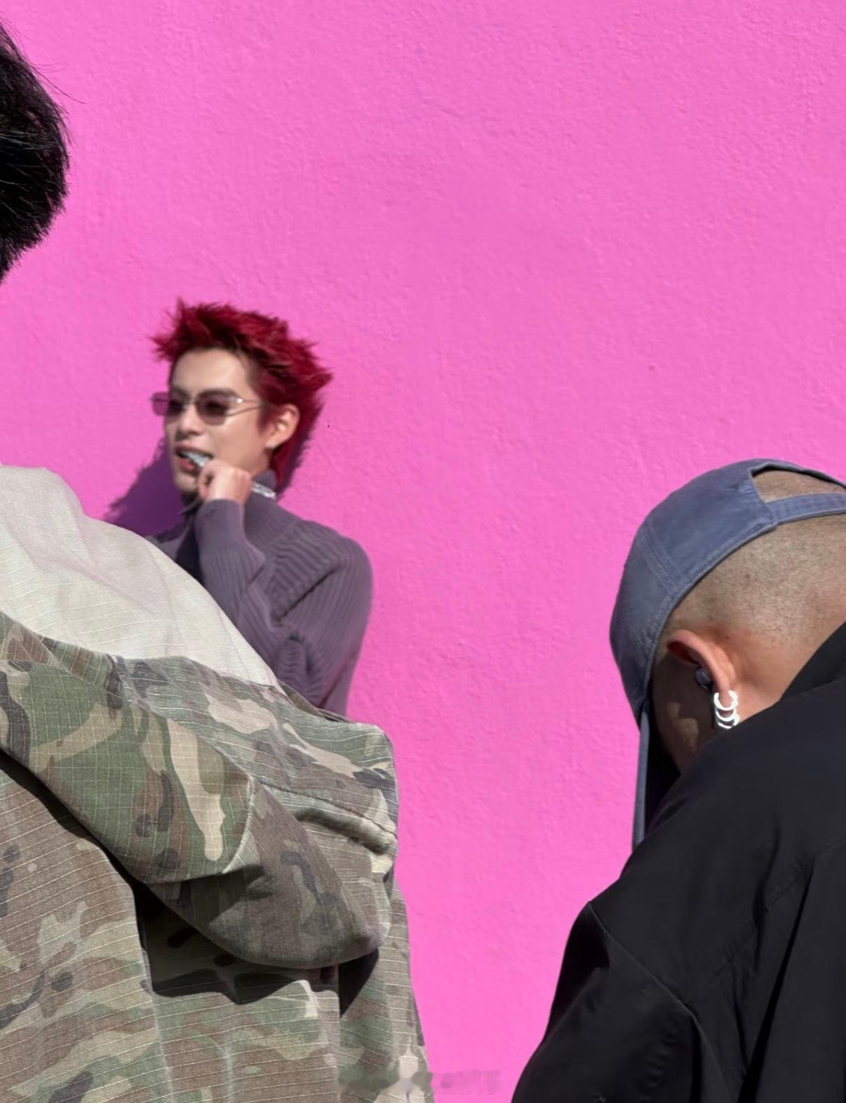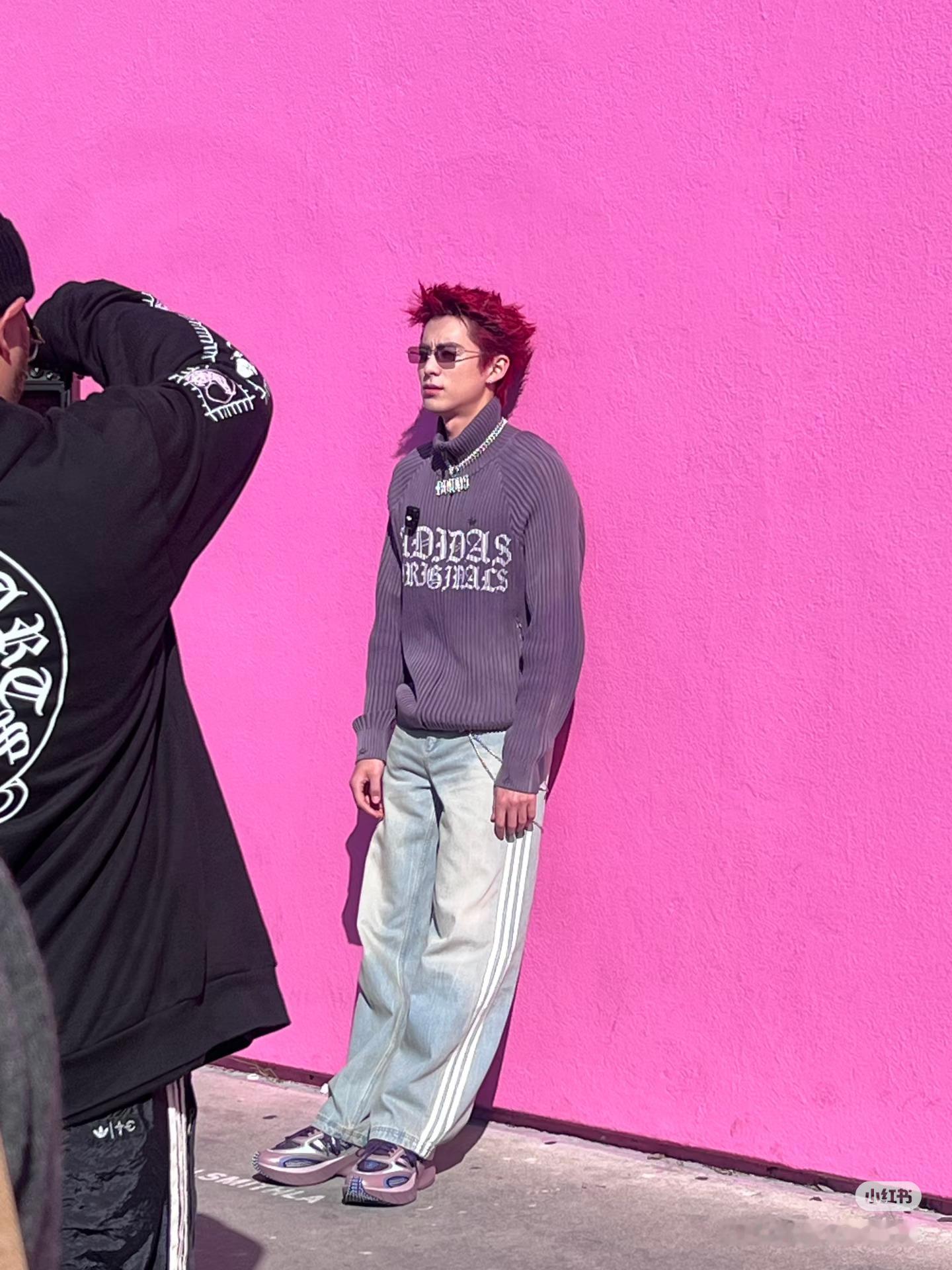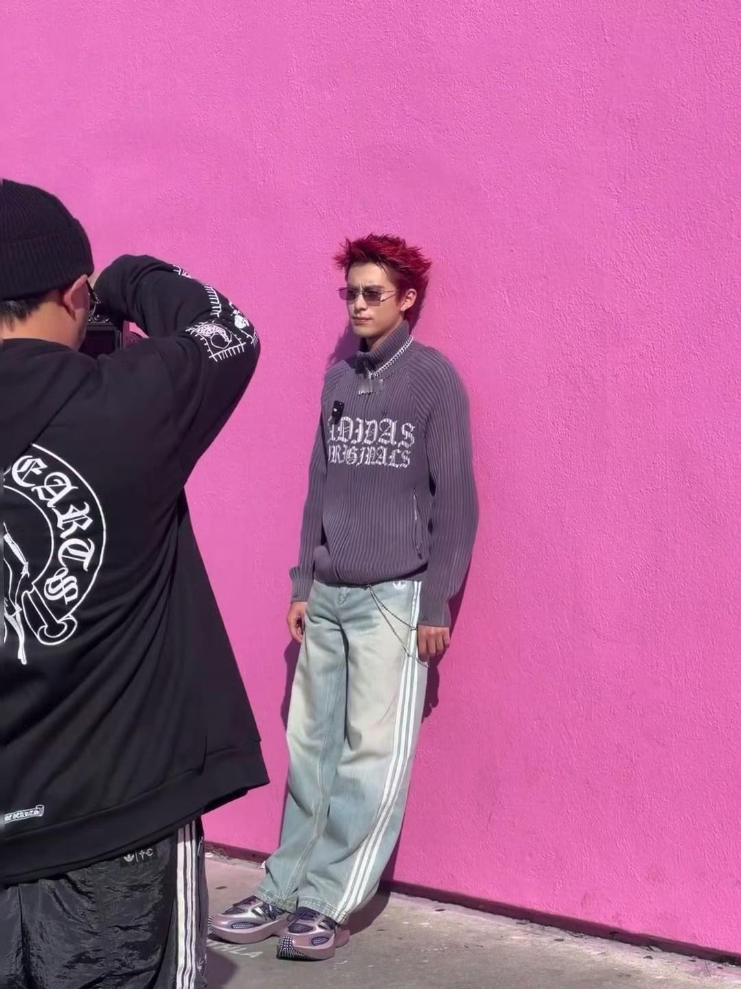 王鹤棣洛杉矶街头拍摄网友LA粉墙偶遇王鹤棣 红发棣棣这个醒目