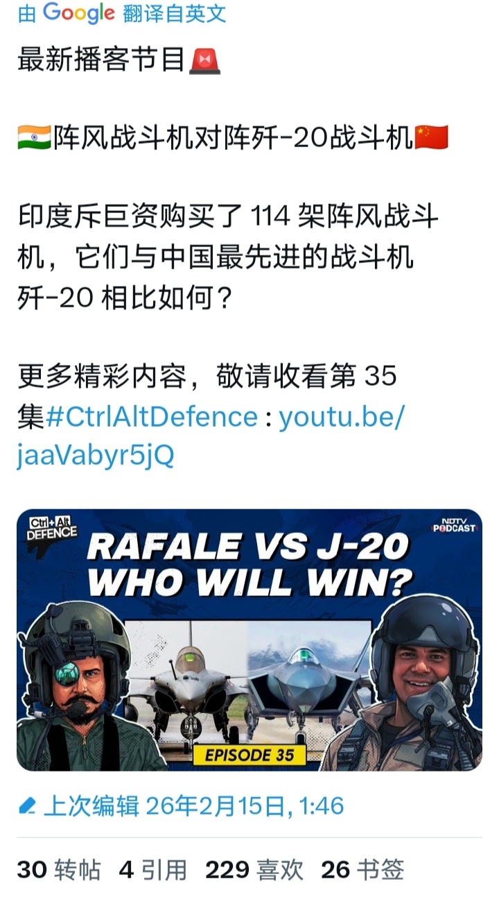 印度人还制作节目探讨歼20VS阵风谁能赢