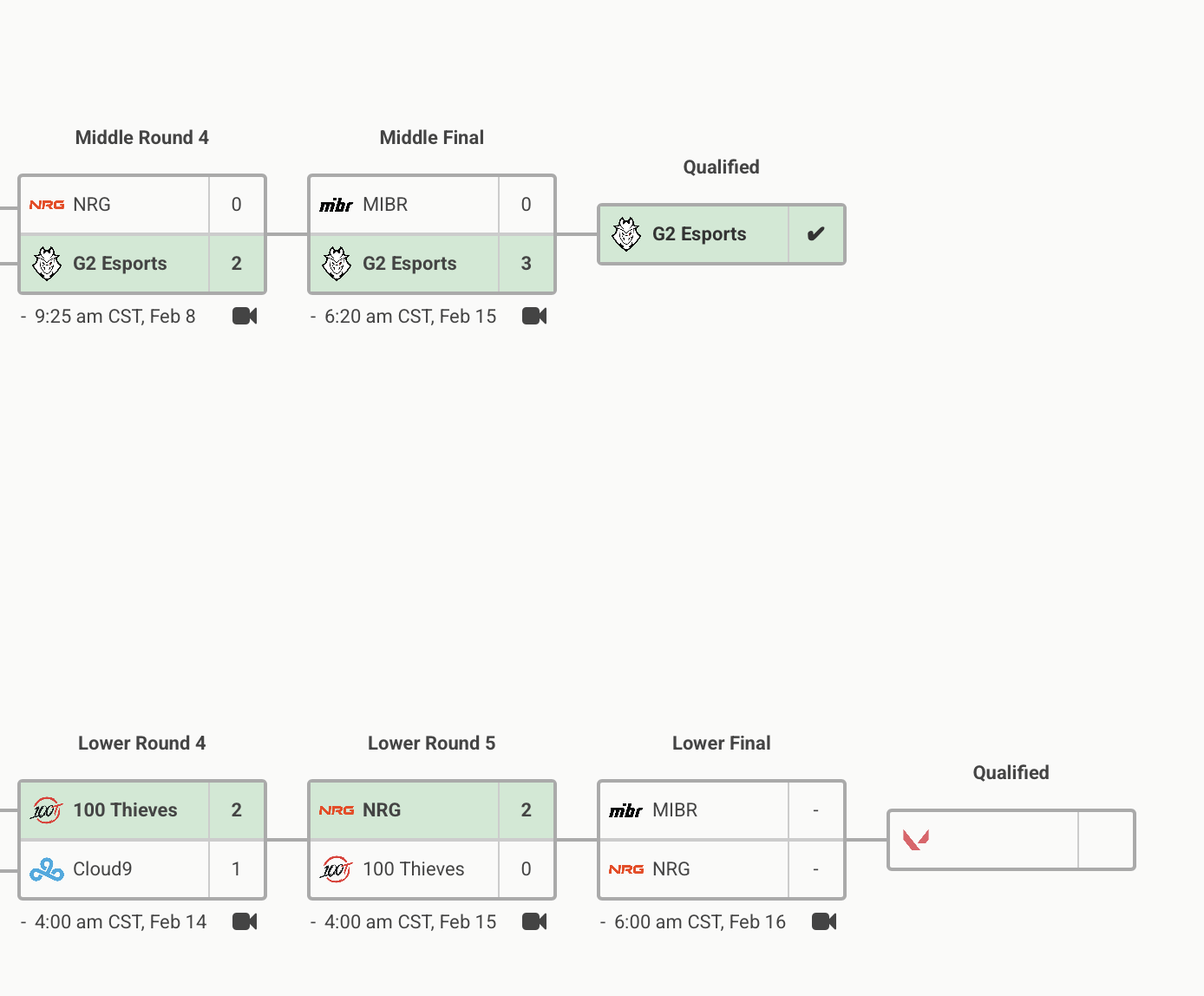 NRG将与MIBR在败决相遇,两队将角逐出美洲最后一个大师赛名额。