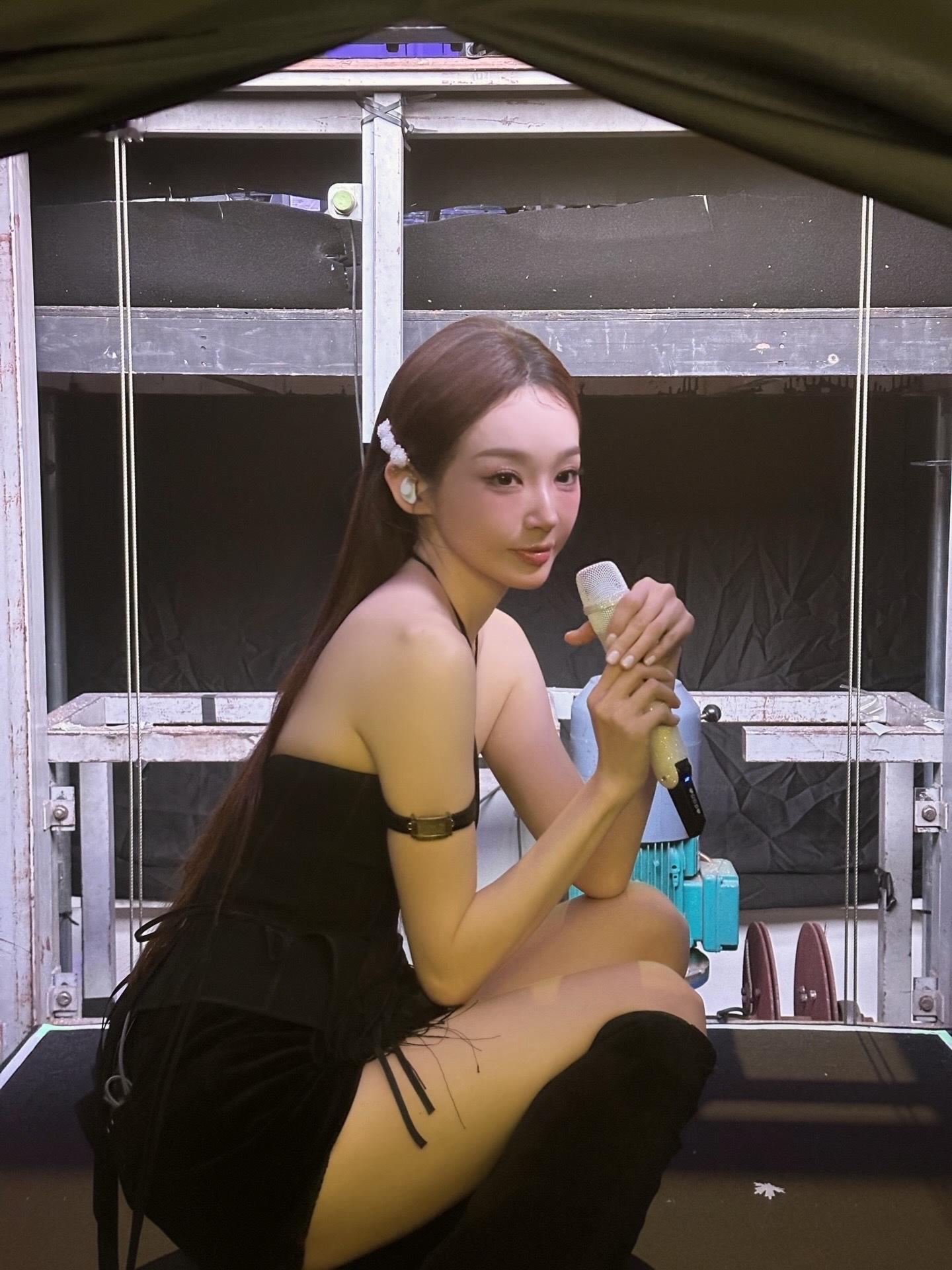 优雅车中自拍照,棕色高领毛衣搭配金色耳环,气质满分!