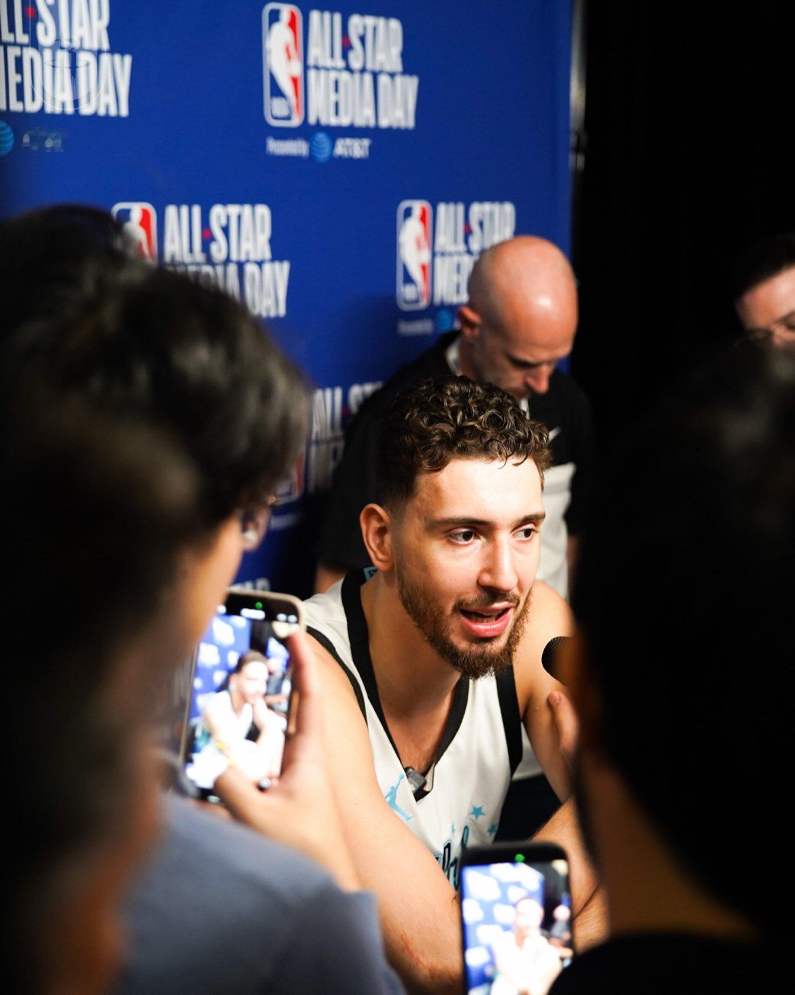 申京出席今日的定妆照拍摄和采访活动🎥休斯顿火箭2026nba全明星休斯顿火箭