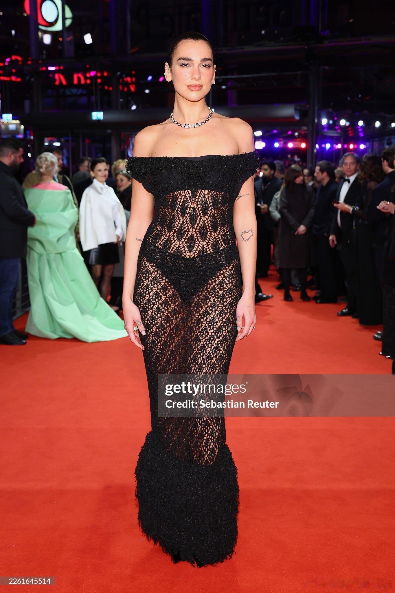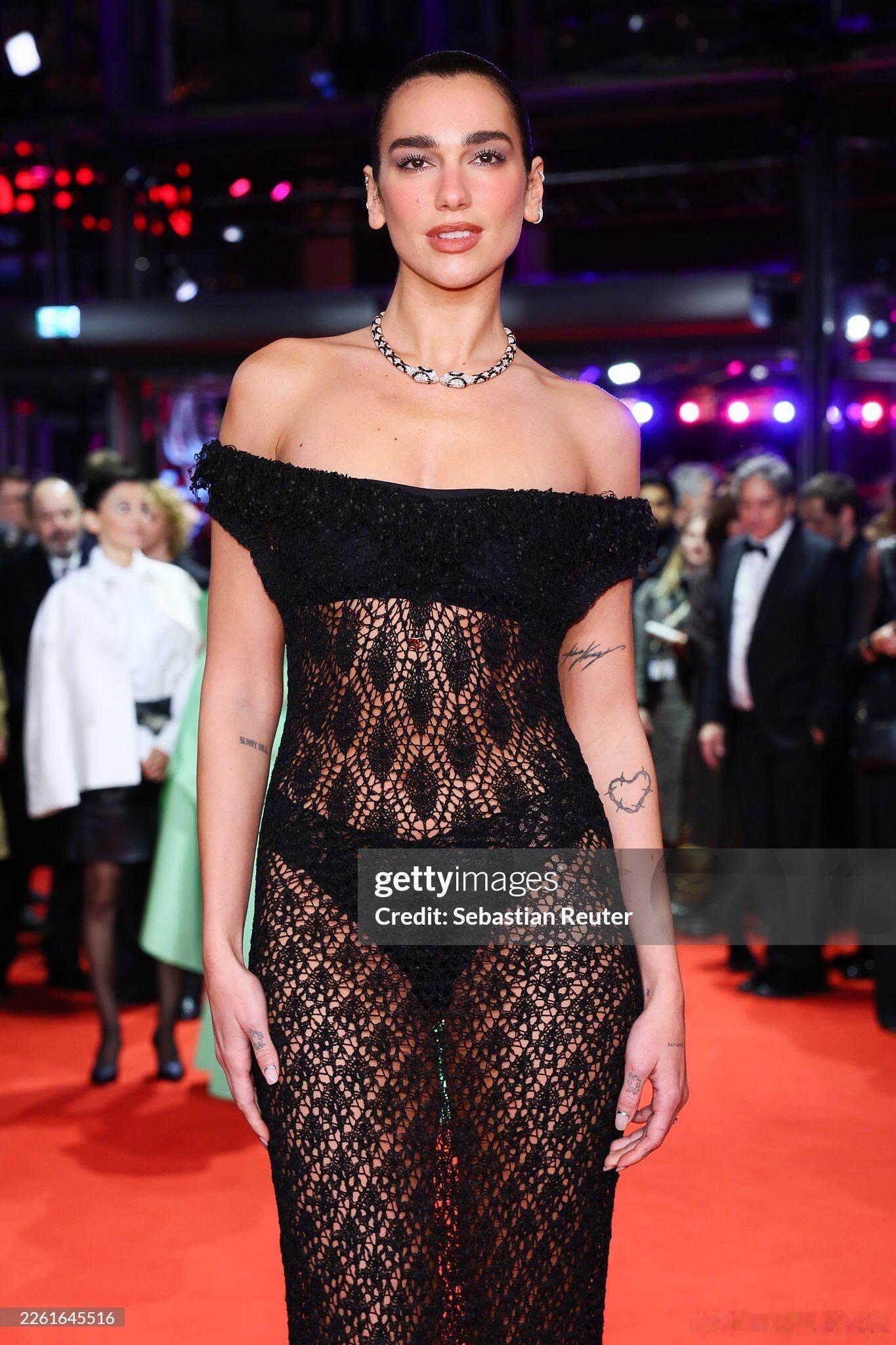 Dua Lipa一身性感的黑色镂空透视礼服,佩戴BVLGARI Serpenti高珠亮相第76届柏林电影节红毯,来支持啪姐夫新片了!