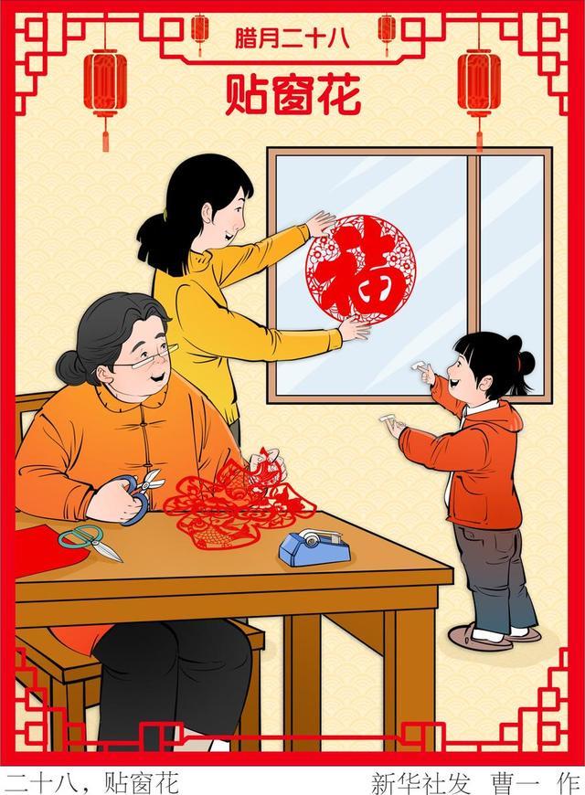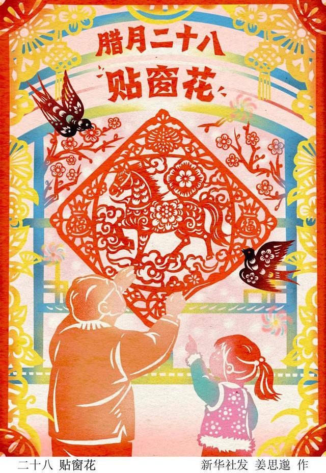 “二十八,贴窗花”