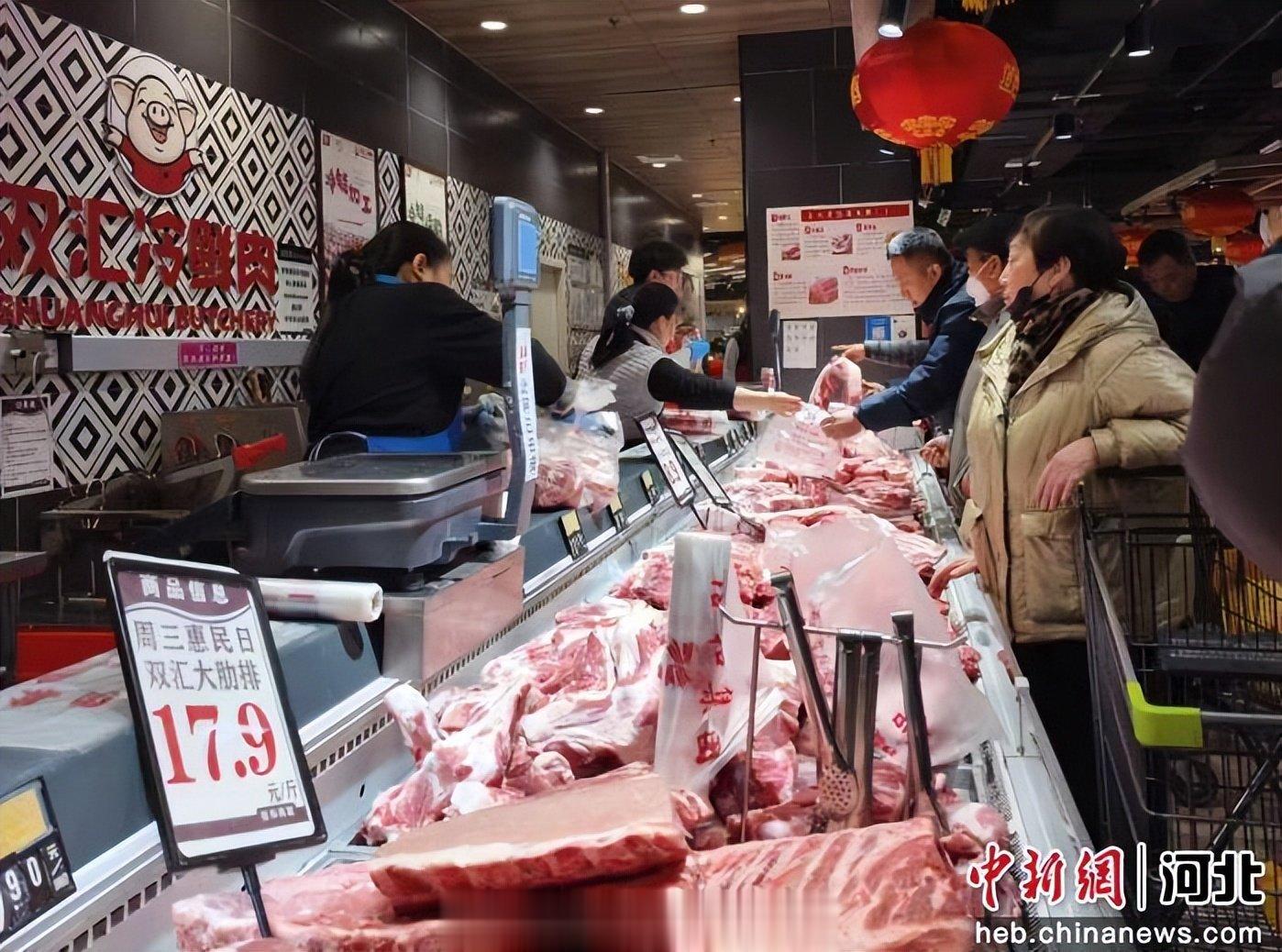 图为超市生鲜区内,市民有序选购肉类等食材。陈明雨摄