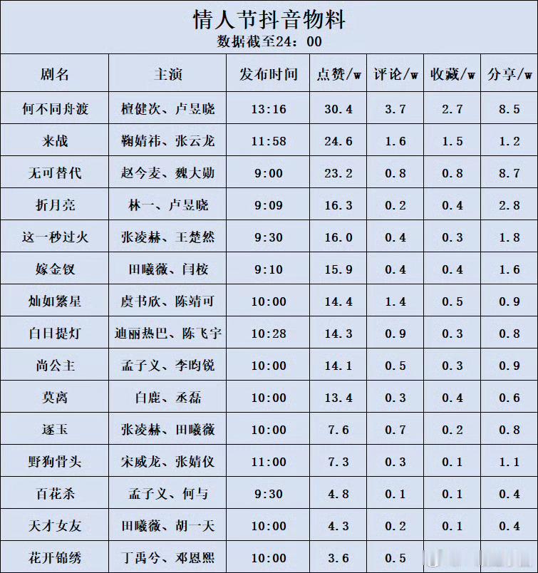 情人节待播剧,檀健次《何不同舟渡》微指第一,百指第一,抖点赞第一!!!
