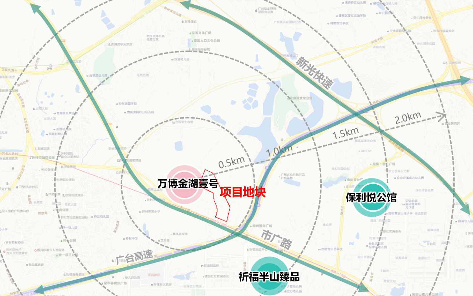 周边在售一手项目包括有敏捷万博金湖壹号、保利悦公馆、祈福半山臻品等,均价在3万/平。