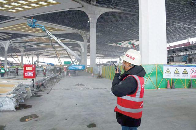 “为确保车站尽早具备通车条件,春节期间我们不停工,将有200多名工友值守奋战,但施工再忙,安全不忘!”中铁建设集团有限公司西安东站项目部安全总监张伟告诉记者。转头他又通过对讲机跟现场施工人员强调安全注意事项,“站房巡检组,重点关注动火作业;幕墙班组,高空作业安全带必须‘高挂低用’……”