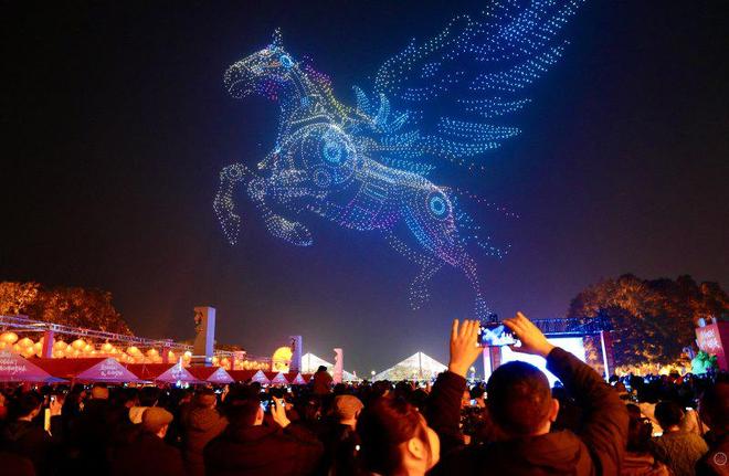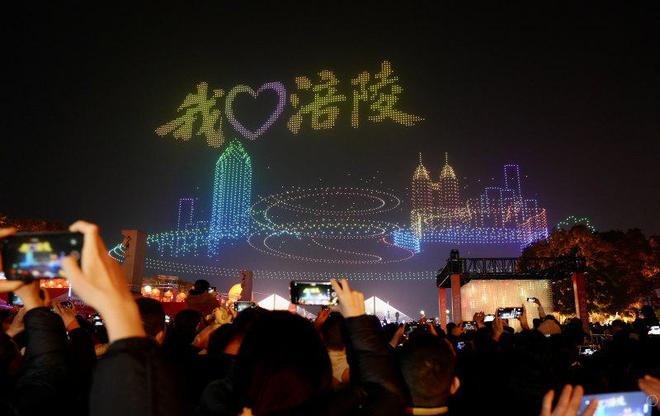 2月14日晚8时30分,重庆市涪陵区两江交汇上空流光溢彩,一场规模宏大的无人机编队表演震撼上演。5000架无人机腾空而起,以夜空为幕、灯光为笔,变幻出展现涪陵人文之美与城市风貌的多彩造型,将山城夜空装点得璀璨夺目。