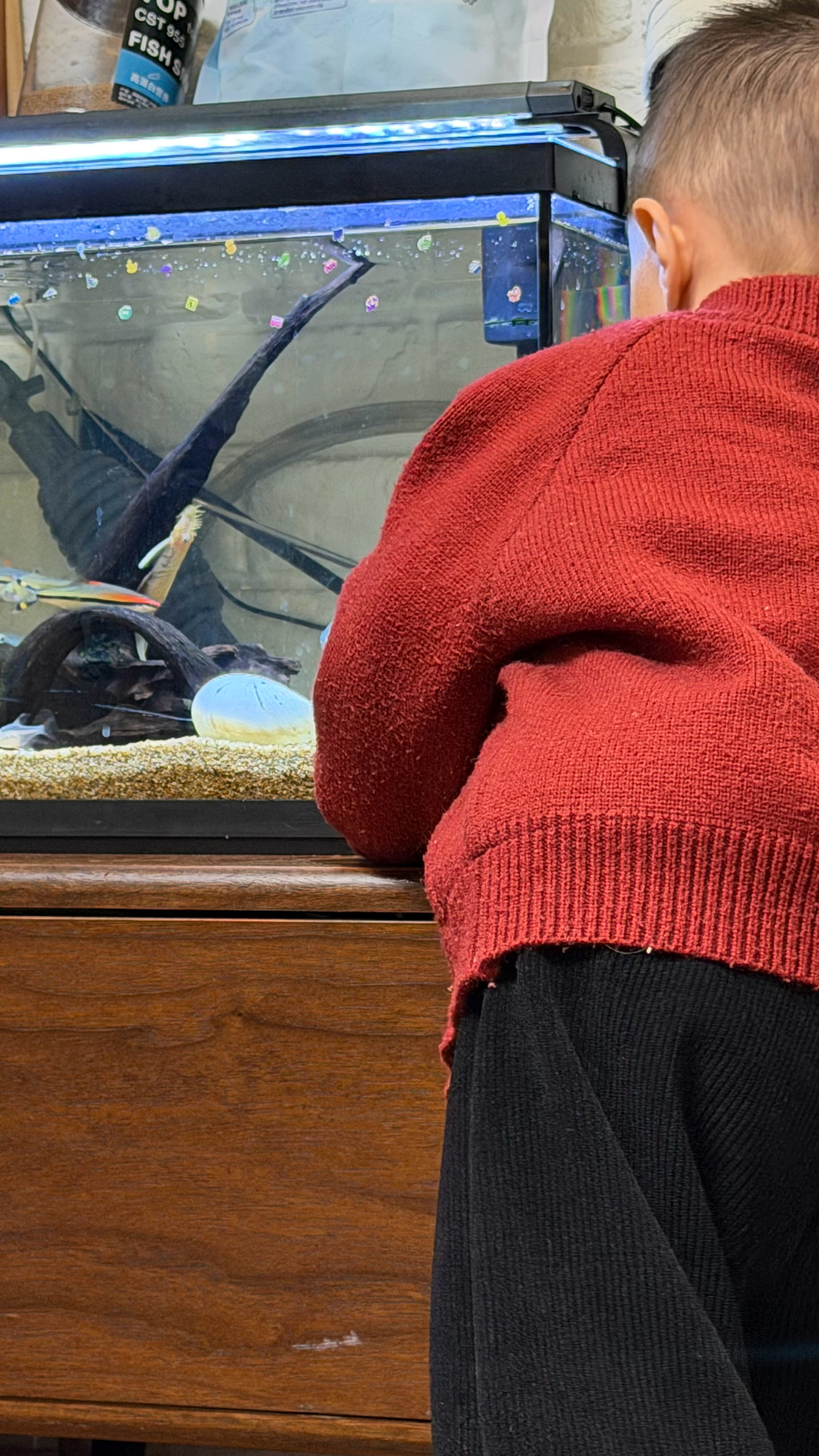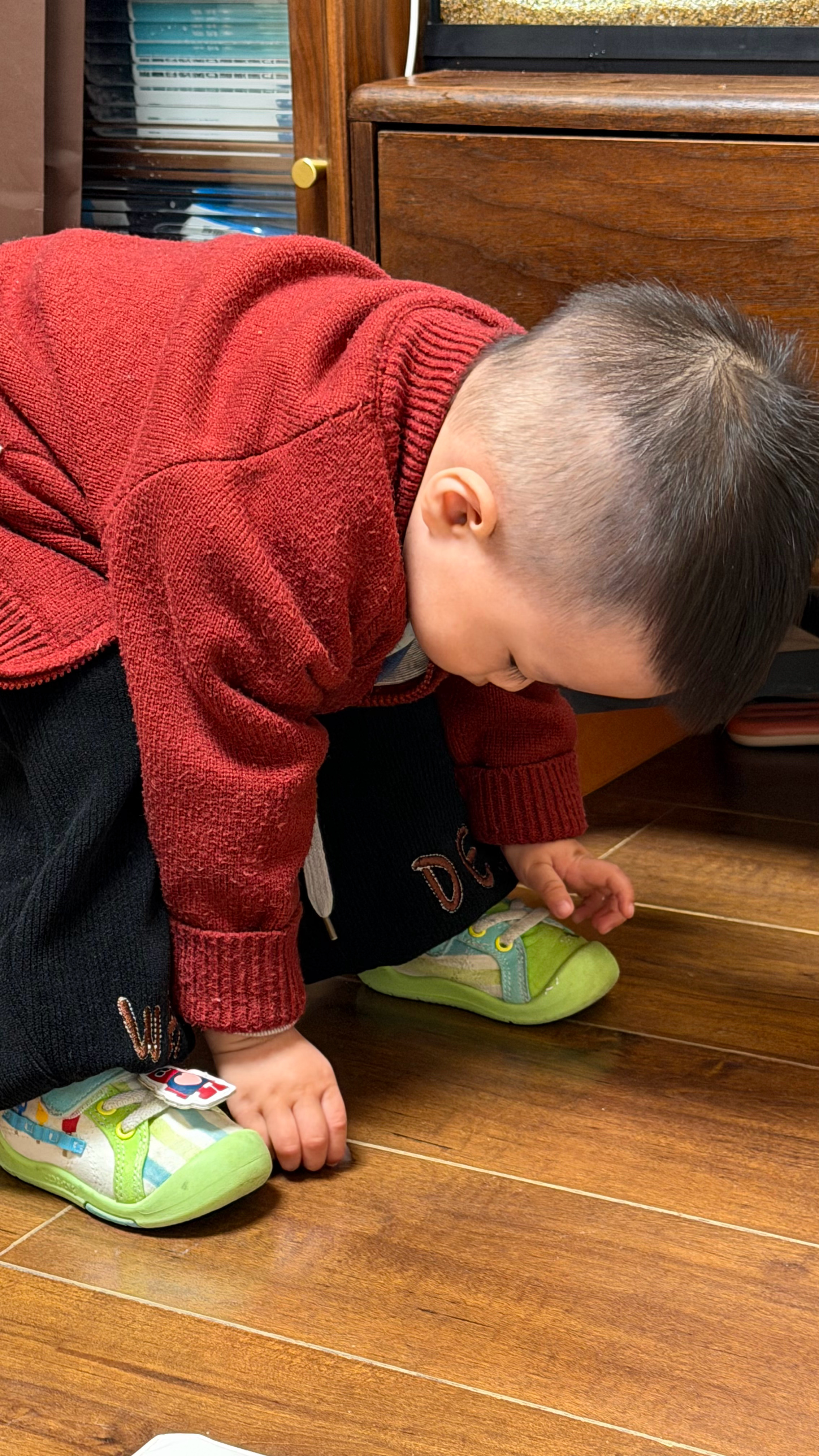 哥们拿冰喂鱼!冰太滑掉地上了!为了捡起这块冰哥们是抓耳挠腮!最终这块冰化在了地上