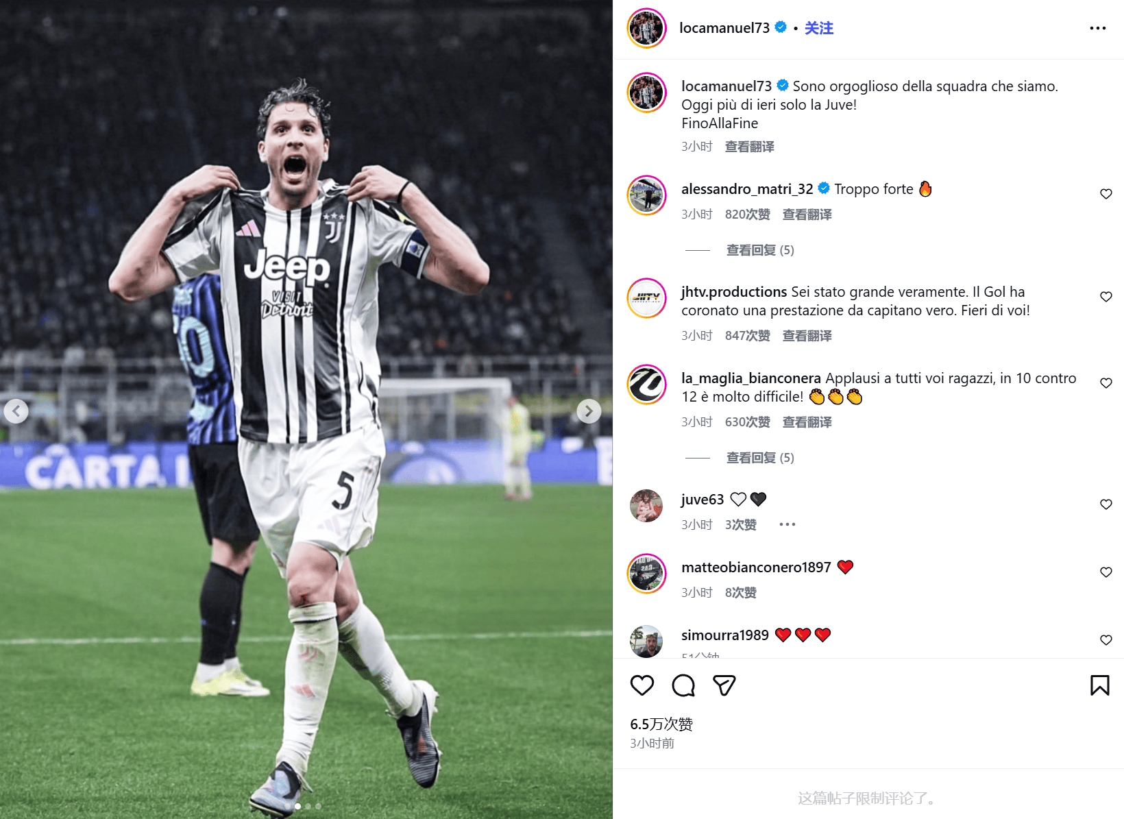 赛后,洛卡特利更新了Instagram:我依然为球队的表现感到自豪,今日将会比昨日更加荣耀,战斗到底!