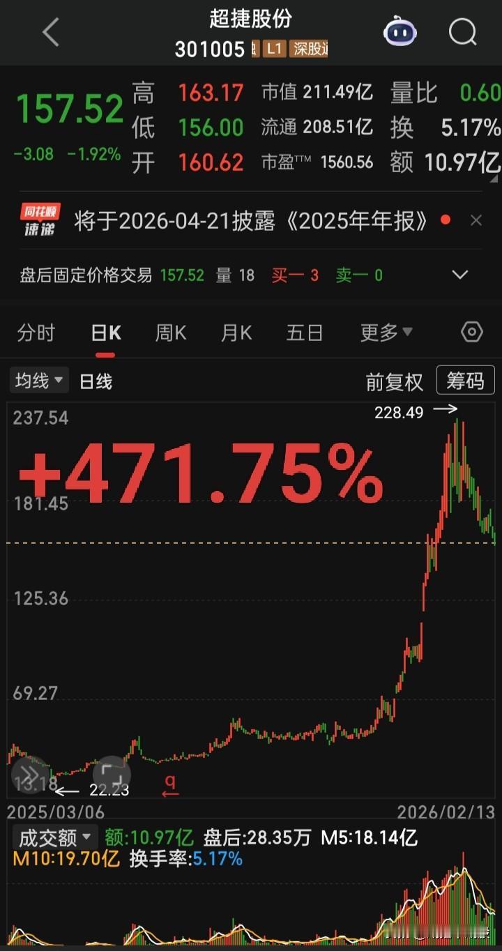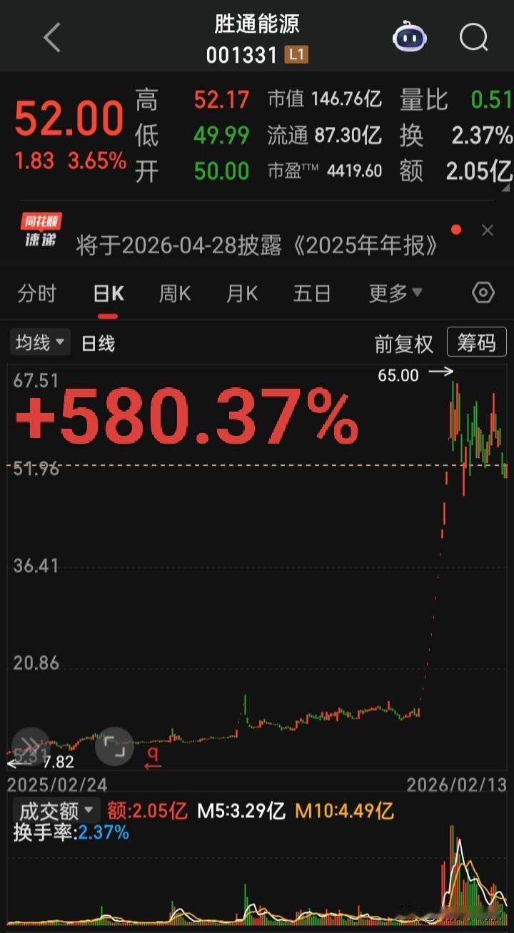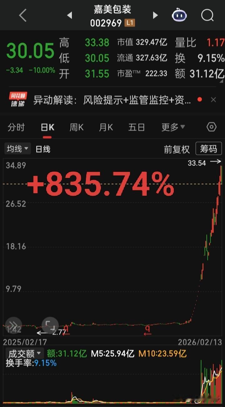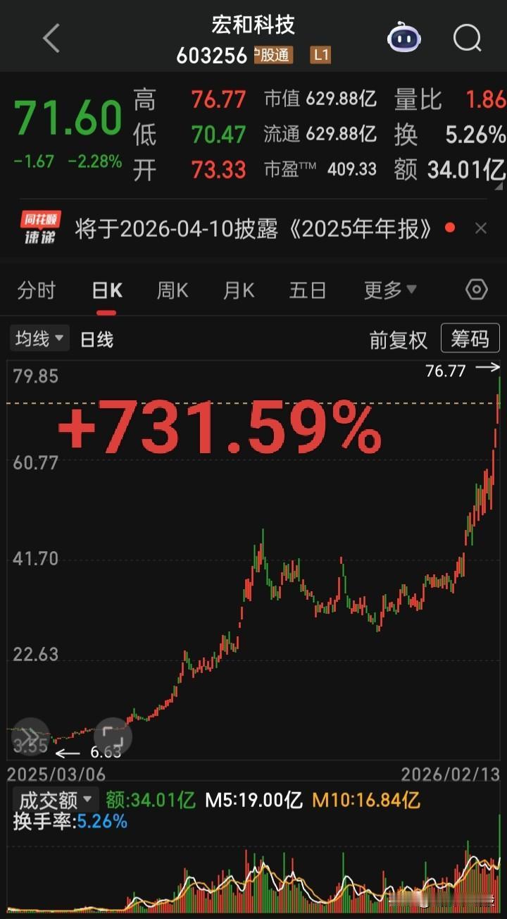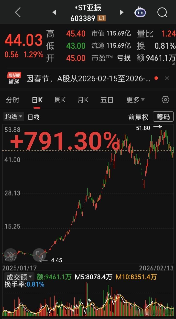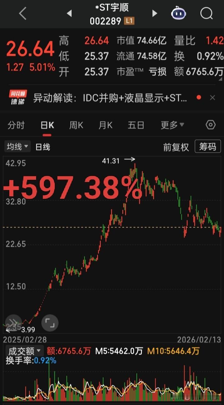 【乙巳蛇年】2025年02月5日-2026年02月13日A股区间涨幅前十 688585上纬新材+1836.53% 605255天普股份+942.69% 002969嘉美包装+835.74% 603389*ST亚振 +791.30% 603256宏和科技+731.59% 601377鼎泰高科+729.49% 601232飞沃科技+649.96% 002289*ST宇顺 +597.38% 001331胜通能源+580.37% 301005超捷股份+471.75% ㊗️大家新年快乐,龙马精神,阖家幸福,万事如意,事事顺意!假期休市过后,马年账户长虹,持仓全红,牛股相伴,财源滚滚!