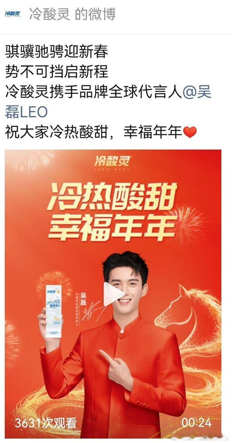 发现吴磊的商务资源真·相当多样化,而且质量都很高端,和冷酸灵合作五年如今又升title!品牌真的很有眼光!