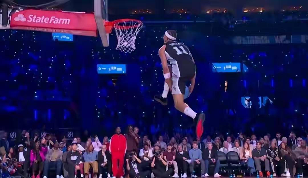 本届NBA扣篮大赛唯一满分50分扣篮,卡特·布莱恩特出场第一扣就惊艳全场,可惜高开低走,第二扣篮想尝试高难度打板背扣,试验多次失败,时间没有了,最后仓促换了360扣篮,仅得43分,第二扣失误葬送了冠军,真的太可惜了,卡特·布莱恩特获亚军,“舞王“凯沙德·约翰逊扣篮大赛冠军! 第一扣:胯下换手侧身暴扣,50分(全场唯一满分) 下面欣赏一下满分扣篮!