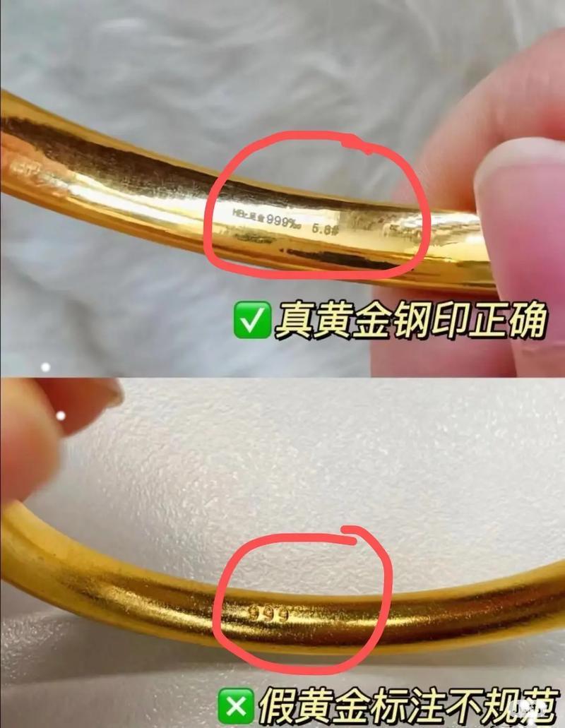 先记基础三招:看印记,正规黄金刻的足金999、AU999,咱国产金饰的印记做工超