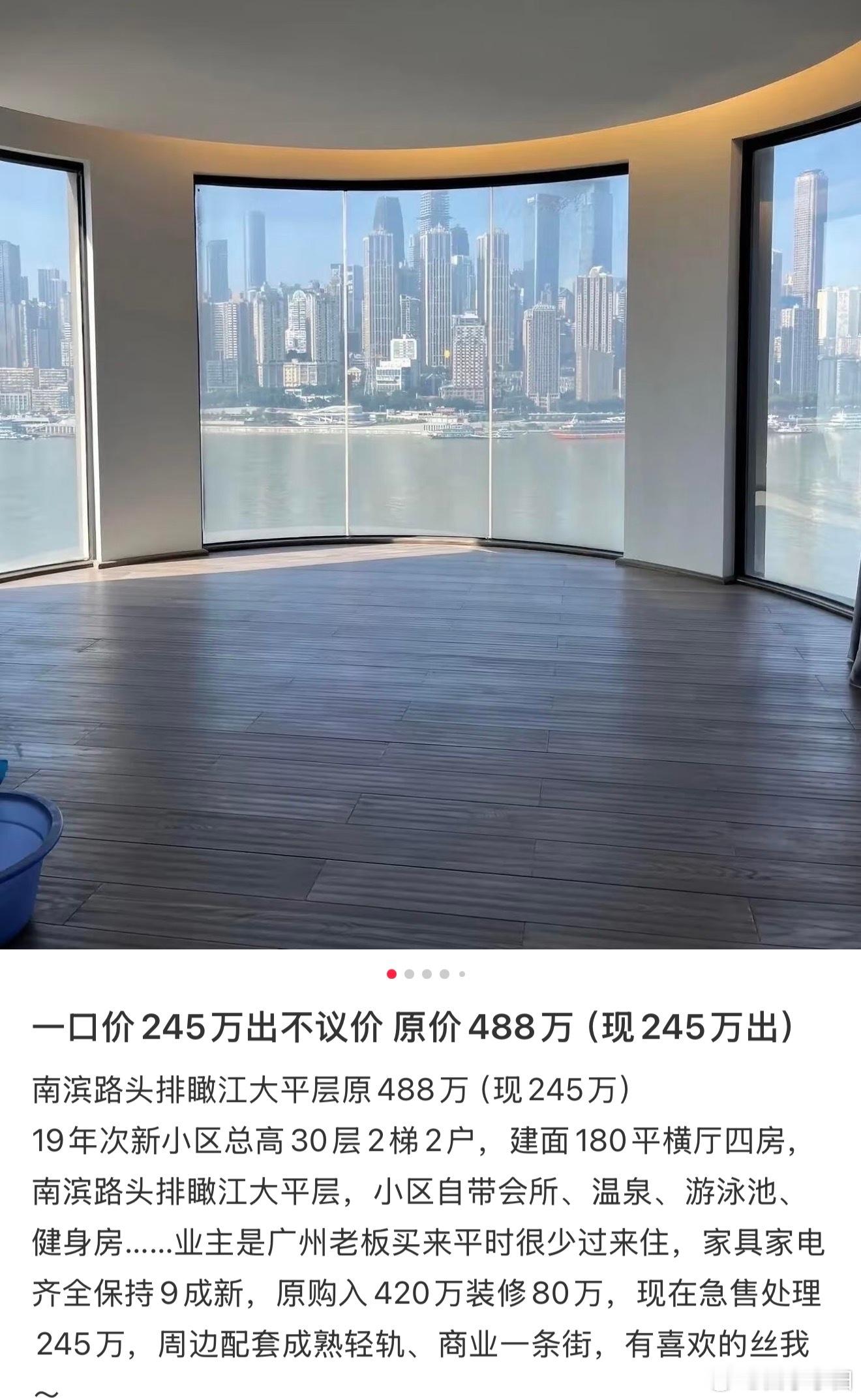 一线江景房客厅落地窗外景色和曼哈顿一样180平横厅四居室楼下有商业有轻轨这房放在随便一个省会不得大几百万?