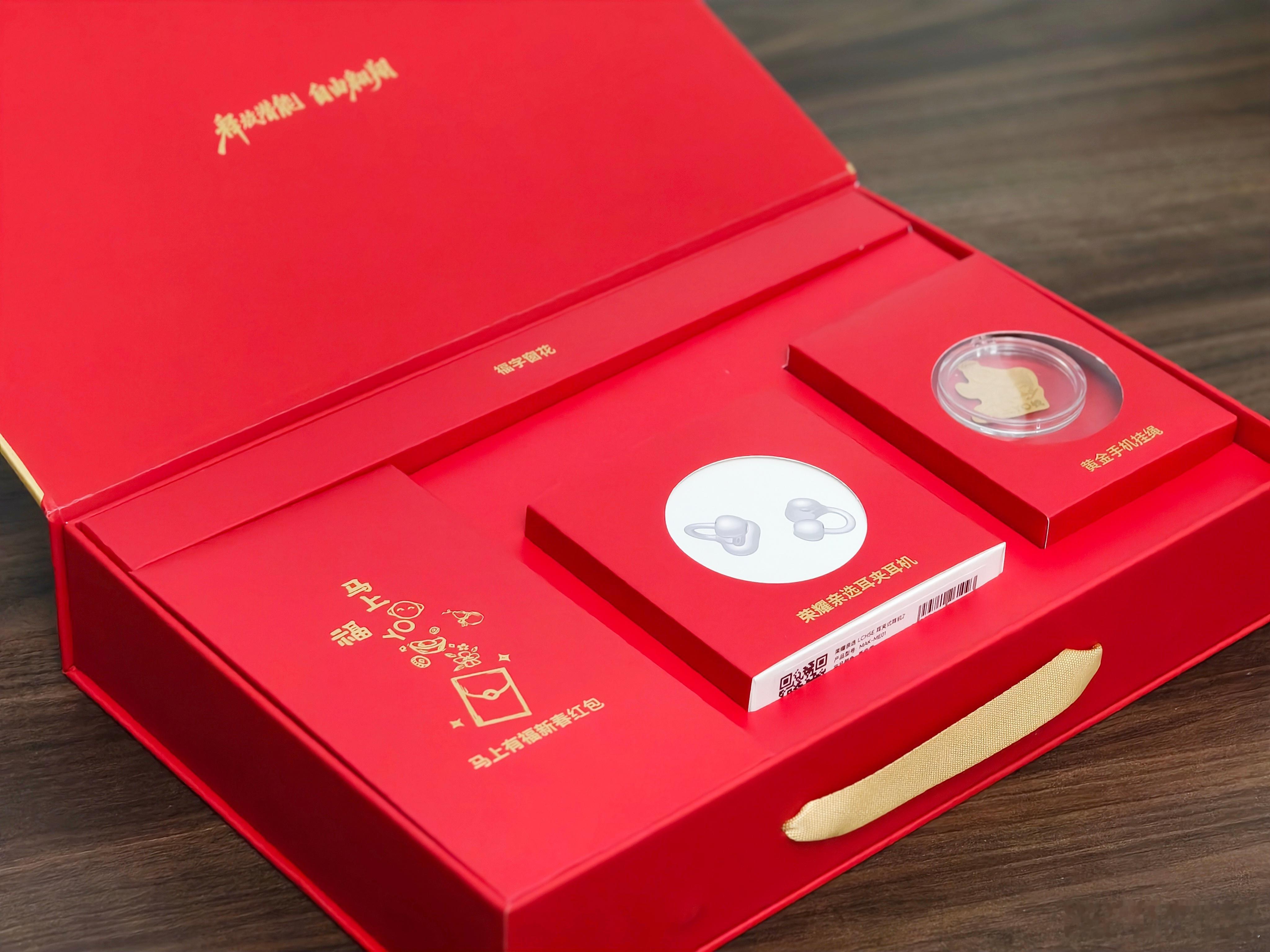 荣耀的年货礼盒有点丰盛啊耳夹耳机一副、手机金贴一枚,还有人见人爱的新春红包和大福一张,喜气洋洋过新年(੭˙ᗜ˙)੭🧧