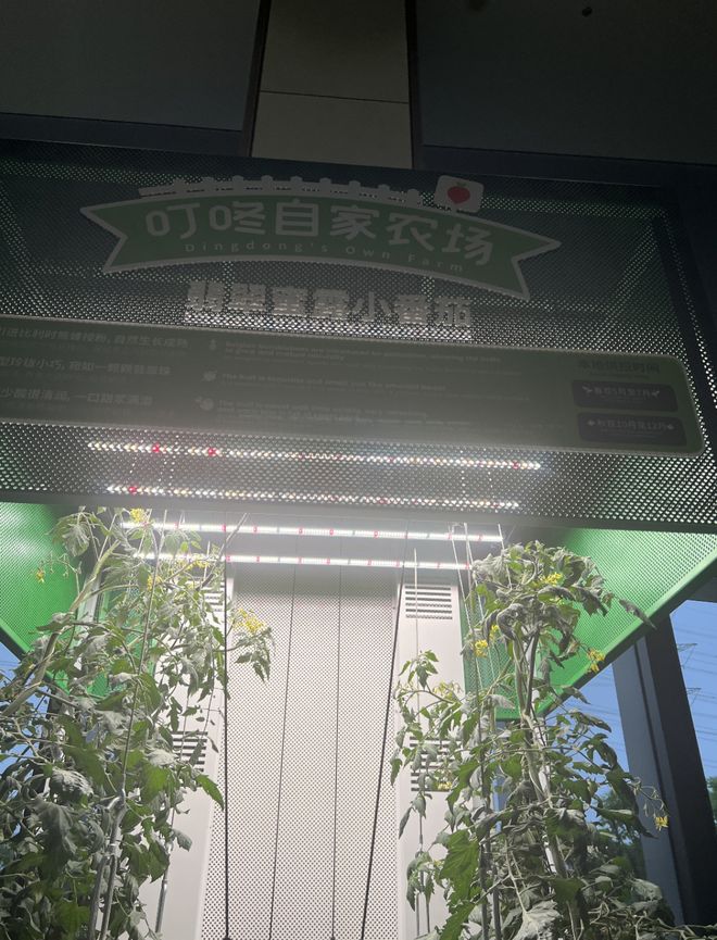 一楼没有前台,一个名叫“叮咚自家农场”的区域,种着当季的蔬果。进进出出的人,有的带一个可携带的保温箱推荐介绍着产品,有的左手提溜一大袋右手也提溜一大袋的食品,往电梯赶。
