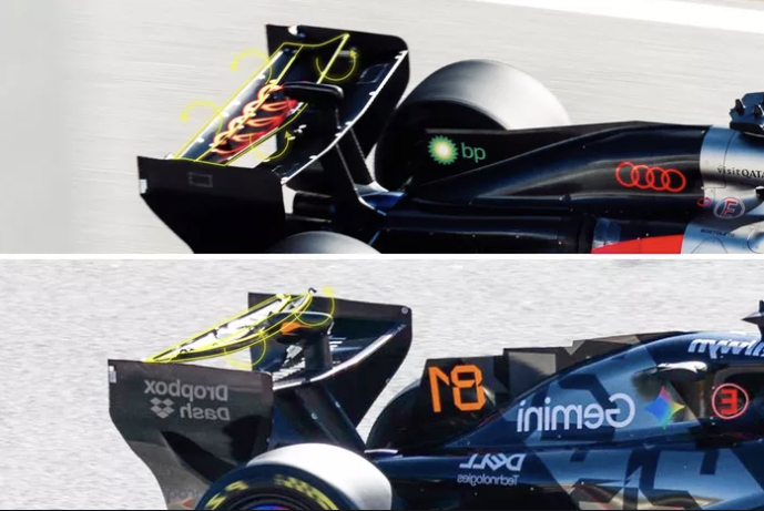 2026年的规则在FIA规定的限度内,释放了工程师的创造力,导致各车队在设计理念上出现显著差异。这种创造力同样体现在主动空气动力学领域,各车队的设计方案各不相同。