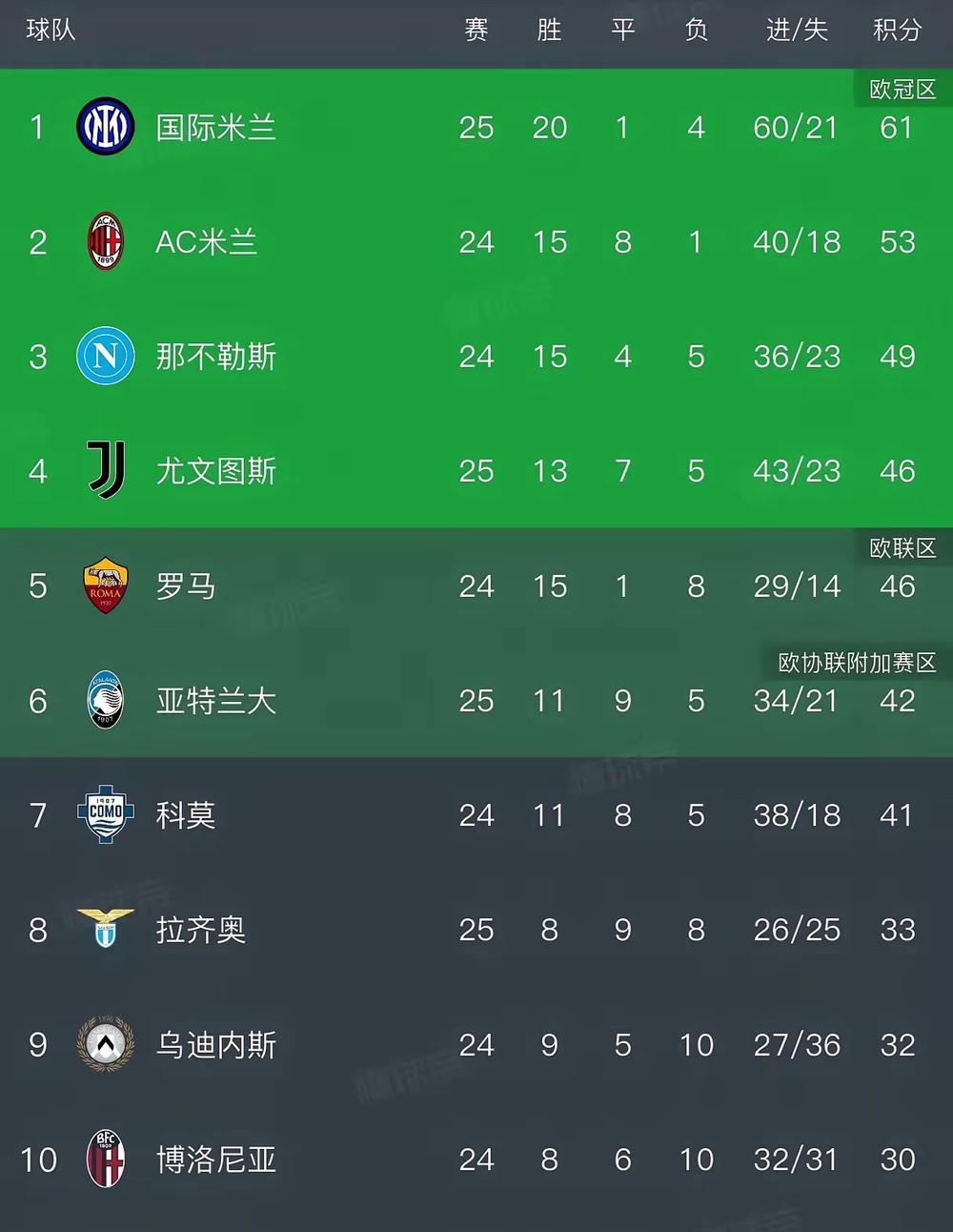 失望就是对了!意甲第25轮国际米兰3:2绝杀尤文图斯取得国家德比的胜利,恩里克造乌龙,皮奥和泽林斯基分别进球。取胜后的国际米兰积61分,继续领先第二名的AC米兰(少赛一场)8分。 赛前,隔壁AC米兰的毛豆们又在计算上分数了,计算着国际米兰失利国家德比,而毛豆自己战胜科莫,这样在米兰德比前双方差距就只有2分了,然后毛豆再取得米兰德比的胜利而一举登顶进而一路狂飙夺冠。话说想象很美好,现实却很实际,国际米兰绝杀的结果毛豆们肯定大失所望,精心计算的分数没了,联赛反超登顶的机会又渺茫了。 说实话,毛豆们就是喜欢自我意淫,一个上赛季的老八,本赛季主动寻求单线作战,成绩还可以心就飘了,结果反而落后三线作战的国际米兰8分。毛豆们还是掂量掂量自身实力吧,别异想天开了。 毛豆们越失望,内拉们越开心。加油,国际米兰,别给AC米兰一丁点机会。