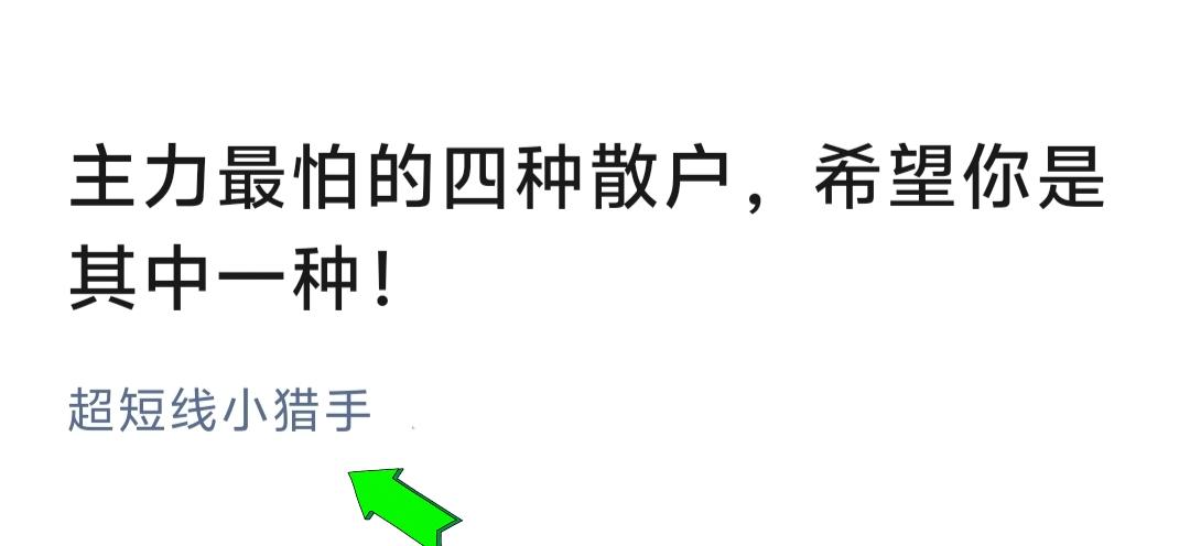 我相信绝大多数股民都会有这样的疑问:为什么炒股人没有社会地位,也不会有社会认同感!我觉得我的股市经历能很好的回答大家这个问题。 我是01年入市的,当时真的是啥也不会,没过多久,便被市场教育的服服帖帖的,后面老老实实认输离场了,那个时候确实是没有社会地位,也没有认同感,自己还不敢跟别人说自己亏了钱,那种感受经历过的都懂的[捂脸][捂脸] 后面中间大概有十几年没碰过股票,因为有自知之明[笑哭][笑哭]直到疫情的出现,那段时间实在是太无聊了,所以又想起了股票,但开始纯粹是抱着花钱买开心的心态再次进入市场的,但这次还有点不一样,这次我有闲暇时间研究,反正疫情隔离也出不去嘛,所以那两个月没日没夜的看各项技术指标,同花顺都被我翻烂了[捂脸][捂脸] 虽然说通过一段时间的摸索,技术上有所长进,但跟稳定盈利那还相距十万八千里,账户曲线波动也很大,总是来来回回,但至少在信心上我有很大的提升了,以前一买就跌,现在至少有时候还能买对了[呲牙] 也许机会真的是留给有准备的人的,可能也是命中注定吧,偶然的一次机会,在网上遇到了一个贵人指点,他一眼就看出我已经在瓶颈期了,所以他总是会在有意无意之间敲打一下我,给我暗示一点方向,按他的意思说是只能暗示不能明示,因为单纯的教技术,只会学到术,根本学不到精髓,后面通过两三年的无数次实盘经验,我也慢慢的开始摸索出了适合自己的模式,现在虽然跟顶级玩家没法相比,但养家糊口已经足够了! 到了现在我再来看待这个问题的时候,我根本就不在意任何人的看法,而且随着稳定的盈利,自身的衣食住行各方面也在相应的提升,地位已经在不知不觉中提高了很多了,所以我觉得这个问题本身就是悖论,有钱就有地位,有地位就会有钱,没钱又没地位的,想要获得社会认同感,那确实是有点困难! 所以当你能够通过炒股稳定盈利的时候,你基本上就不会在乎什么社会地位了,那个时候你看谁都会觉得是忙忙碌碌的蜜蜂而已,而且当你赚钱了,你觉得你的社会地位会低吗?但凡还在纠结这个问题的人基本上都是在股市目前没有赚到钱的人。 可能大家认为全职玩家就是每天只用手指随便动一动就可以休息了,那是大家从来没有看到人家后面有多少付出,职业玩家每天坐在电脑前起步价要8个小时以上,要随时关注盘面动态,不断分析最新信息,提前做好隔天交易准备等等,跟那些“兼职”玩家,一天只看几次自己的持仓涨没涨那是有质的区别的! 股市是能最能看清自己的地方。 因为你贪婪,所以你才会追高。 因为你恐惧,所以你才会杀跌。 因为你有赌性,所以你每一次都是满仓。 因为你不敢承认失败,所以深套之后就骗自己说是价值投资。 其实,每一次操作都是你性格的底色,每一次盈亏也是你命运的因果。 当你懂得不再频繁的追涨杀跌,耐心的等待,确定性的出现,你就差不多可以摆脱浮躁了。 当你懂得宁愿错过,也不愿做错的时候,你才算真正懂得了交易的真谛! 当你学会重仓,并且有足够的耐心和信心等到确定信号之后再离场,你就可以以交易为生了! 加油!我相信有付出肯定是有回报的,股市最大的敌人就是自己的贪念和浮躁,当你开始懂得静下来的时候,也许又是另一番风景了! 如果你现在还是在迷惘期,那可以去看看我在公众号(见图二)上面的一篇关于散户类型的文章,你只要领悟其中一种就可以在这个残酷的市场中生存下去了! 学习是由态度决定高度的,自以为是只能固步自封,但绝大部分人想的都是如何轻松攫取他人的成果,那怎么可能? 世间行业,都是先要学会不断的探索,就好比我们在头条看到一个自己认为还有用的内容就会以评论留言的形式去请教一样! 再学会不断的认可,这就好比我们看到一个自己觉得认可的内容就会以点赞关注或者分享收藏的形式去认可它一样,这种三人行必有我师的心态才能让我们自己不断的突破!