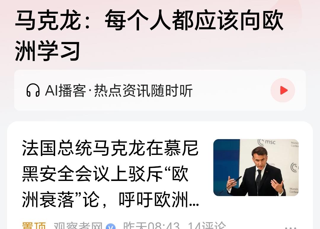小马哥喝酒都不吃菜的吗?大清早就喝成这样? 每个人都应该向欧洲学习? 学习啥? 学习给美国人当狗又被一脚踢开?学习不干正事搞白左那套? 学习一盘散沙各自为政? 学习在互联网时代被抛弃、在移动互联网时代被抛弃、在物联网时代被抛弃、在AI时代被抛弃? 啥都跟不上还跟你学个啥? 跟着中国学还差不多。 难怪税宗都看不起你,知道你马上要下台了,都不稀得理你。 把法国巴黎偷盗抢劫的问题解决好了再来谈这个问题。 点右上角关注我,我们一起去看这个魔幻的世界