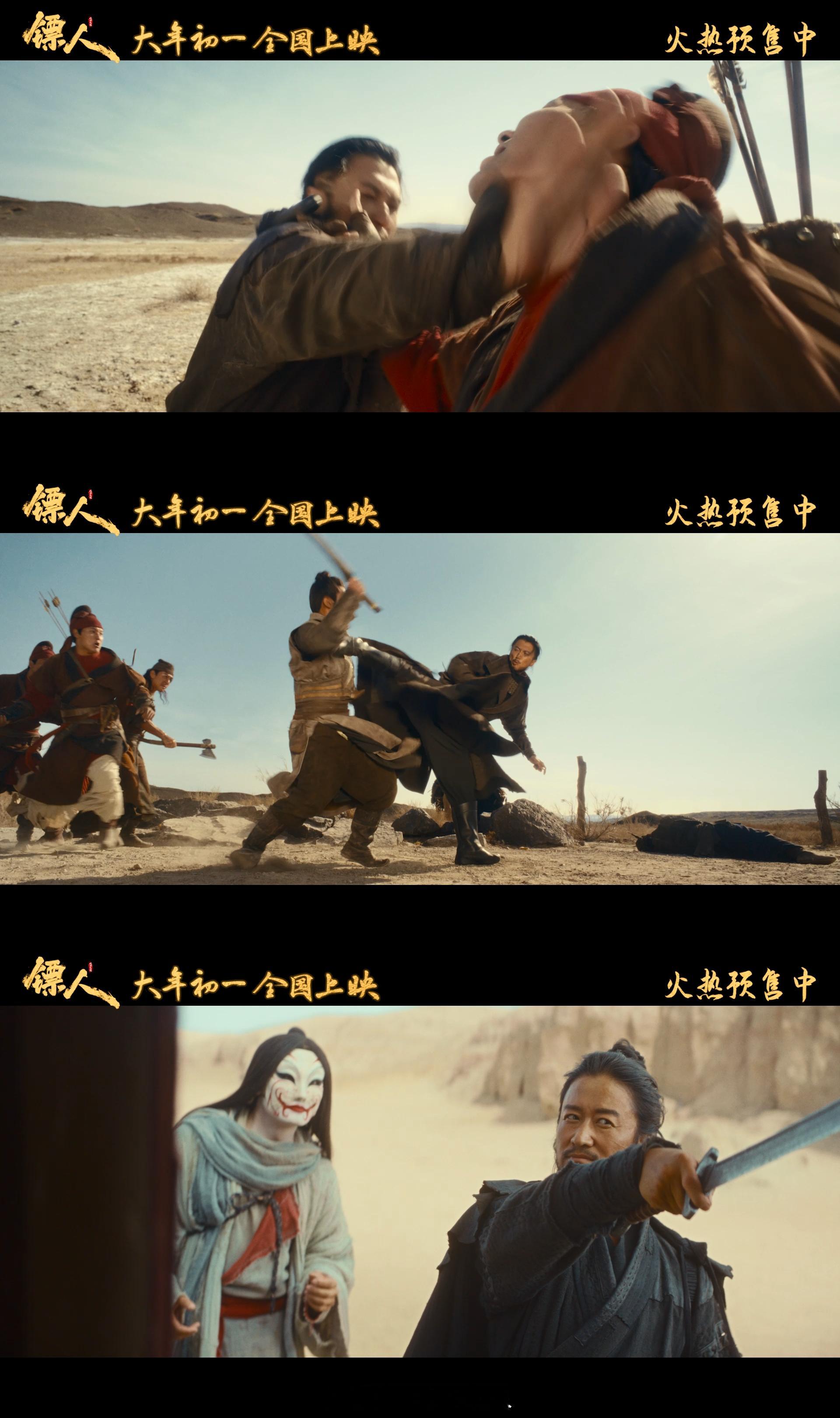 电影镖人新春版特别预告镖人预告拼好车好热闹《镖人》这个新春预告看得我更迫不及待想看了!画面里既有那种大气的中式美学构图,又讲出了角色之间复杂的关系!黄沙漫卷、戈壁纵横,人物在天地间渺小却坚韧,刀马前行的背影、阿育娅拉弓的剪影,每一帧都藏着生命张力!大年初一见~