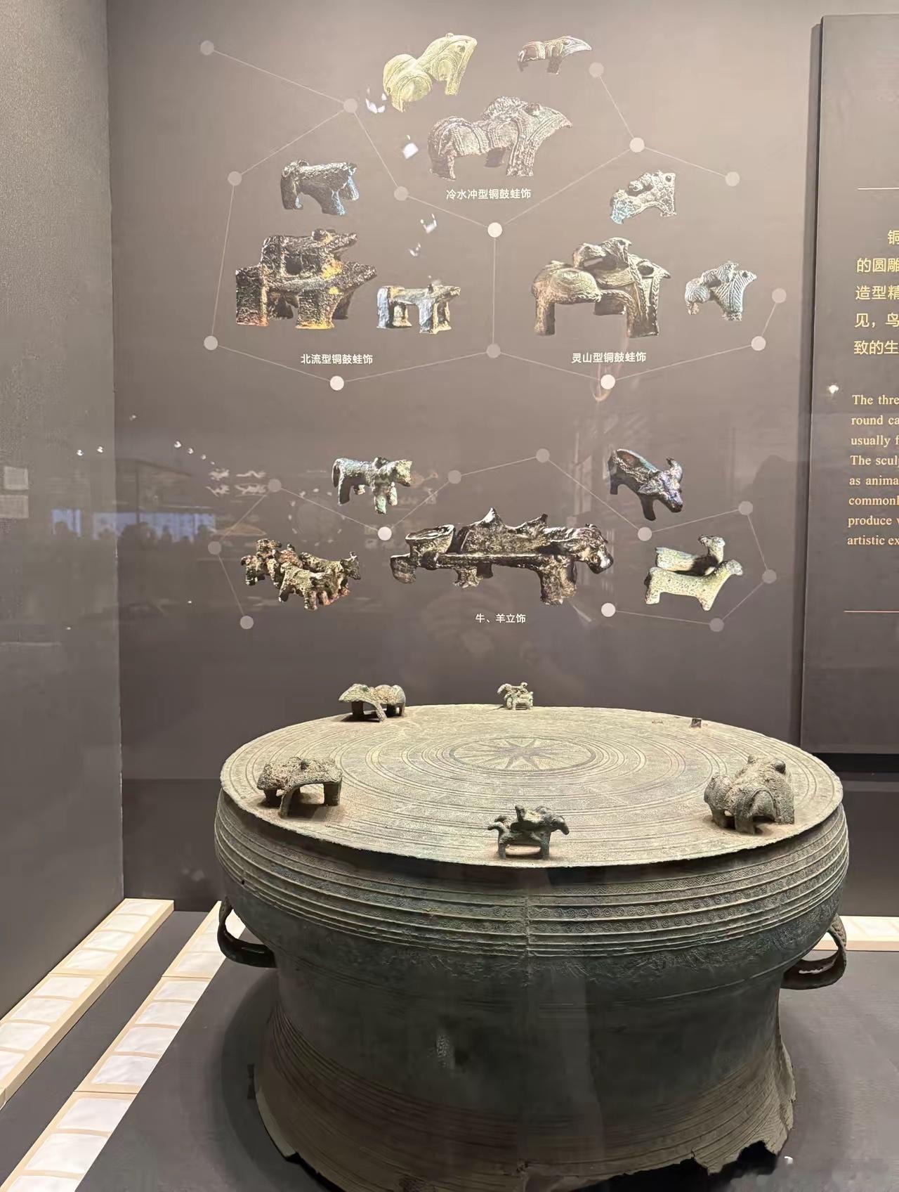 广西铜鼓,有“北鼎南鼓”之称,是骆越等百越族群权力与财富的核心象征(《隋书》载有鼓者号“都老”,群情推服);用于祭祀、盟会、战阵号令、丧葬陪葬,直接反映古代南方部落的层级结构与公共秩序。铜鼓沿西江—红河等水路传播至越南、老挝等地,是中国—东南亚古代文化圈的重要纽带;至今壮、瑶、侗等民族仍有铜鼓习俗。