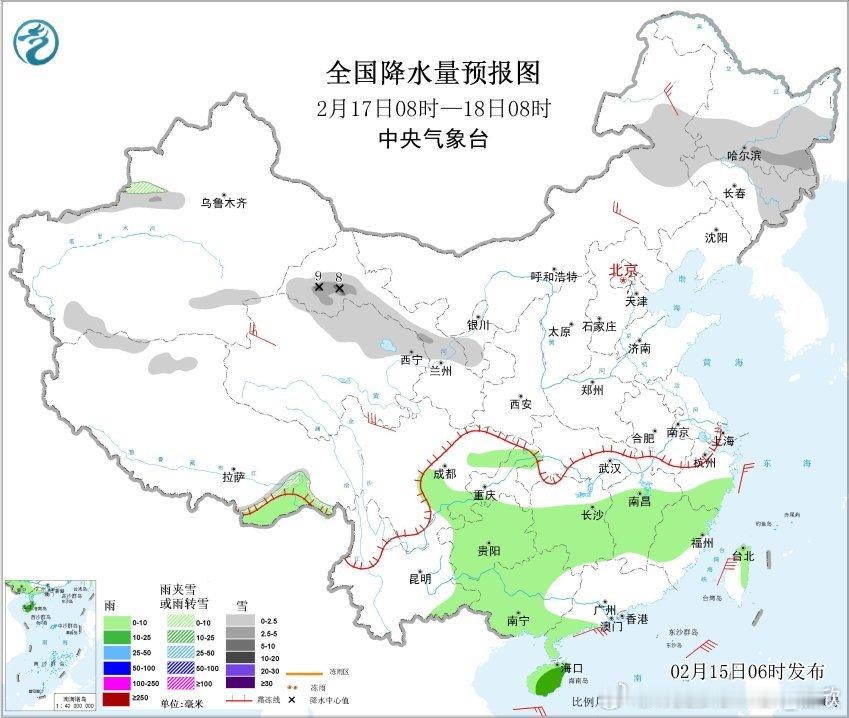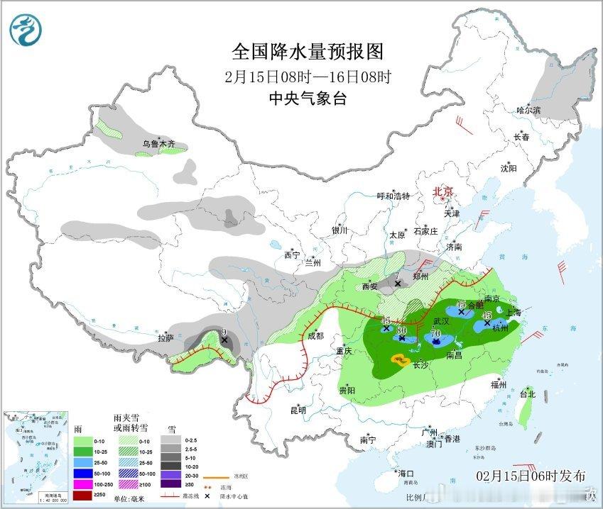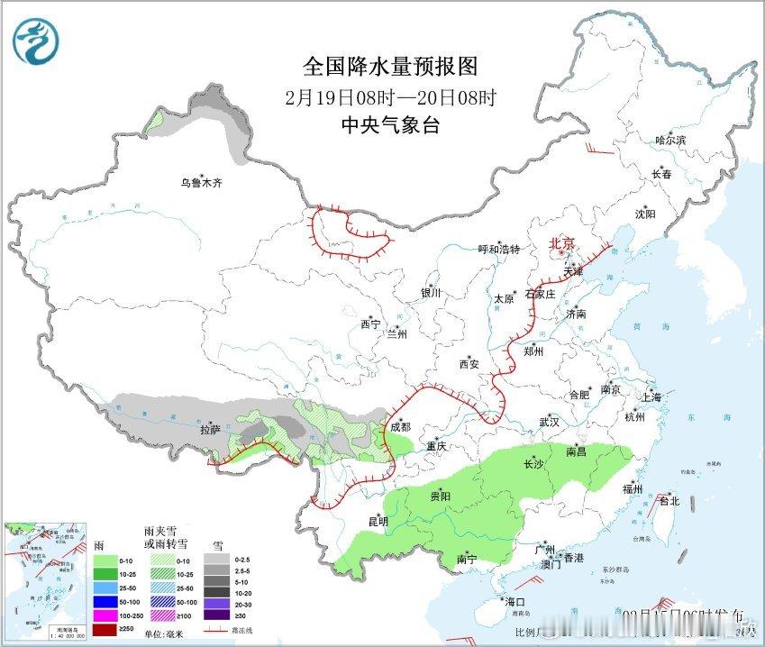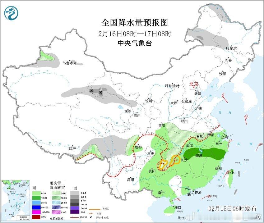 【雨雪】昨天到今晨,南方降水暂时缩减。黑龙江降雪明显增多,包揽降水榜前8,乌伊岭出现暴雪,嫩江伊春等站点出现大雪。今天冷空气南下、暖湿气流北上,在长江南北两侧形成大范围降水。这也可能是春节假期里,江南降雨最强的一天。