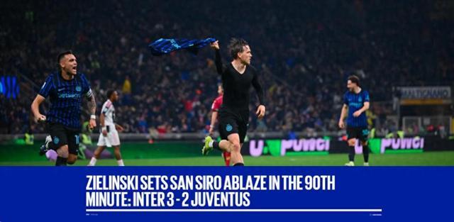 北京时间2月15日凌晨,本赛季意甲联赛第25轮上演意大利“国家德比”。国际米兰队在主场凭借泽林斯基的“绝杀”,3比2击败尤文图斯队,继续高居积分榜榜首。