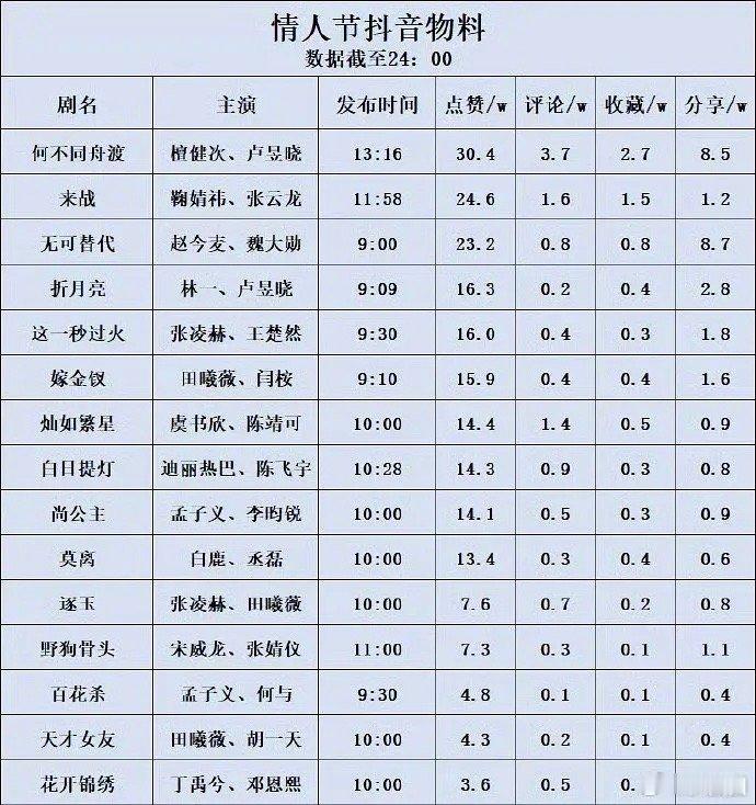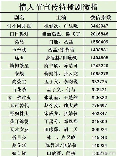情人节宣传待播剧数据汇总,看好哪部剧~
