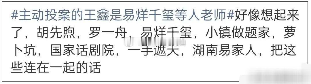 随着中戏表演系连续三任系主任主动投案消息公开后,在职期间录取的明星学生们纷纷陷入争议,最受关注的则是易烊千玺、胡先煦、罗一舟,他们三位不仅都是王鑫的学生,还都在同一年考了国家话剧院。