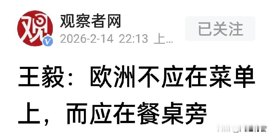 中国为欧洲仗义执言,波兰深表赞同。 俄乌冲突发生在欧洲大地上,且欧盟及众多欧洲国家深度参与到冲突之中,但在俄乌和平谈判中,美国却撇开欧洲直接与俄罗斯谈判,达成初步协议后才交由欧洲和乌克兰讨论,用一句通俗的话来说就是欧洲没有权利上桌吃饭。对此,中国在慕尼黑安全会议上表明了自己的态度。 据外交部网站消息,当地时间2026年2月14日,中共中央政治局委员、外交部长王毅出席慕尼黑安全会议,在“中国专场”发表演讲并回答现场提问。面对俄乌和谈中欧洲作用问题,王毅外长表示:欧洲不应该是旁观者。去年年初,美俄启动对话之后,欧洲似乎被晾在了一边。我曾在这里提出,战事发生在欧洲大地,欧洲有权也应该适时加入谈判进程。欧洲不应在菜单上,而应在餐桌旁。中方支持欧洲同俄罗斯对话,提出自己的主张和解决方案。在此过程中,通过解决根源性问题,形成更加均衡、有效、可持续的欧洲安全架构,防止类似事件再次发生,实现欧洲的长治久安。 中国这一主张也得到了波兰的支持。据《今日俄罗斯》报道,当地时间2月13日,波兰副总理兼外交部长西科尔斯基在德国慕尼黑接受采访时表示,是欧洲而非美国正在为俄乌冲突埋单,因此“欧洲理应在谈判桌上有一席之地,因为这场战争的结局将影响到欧洲”。西科尔斯基指出,美国曾向基辅提供大量军事援助,自然而然地扮演了主导角色,但如今美国的支持已趋近于零。西科尔斯基强调,美国通过欧洲国家向乌克兰出售武器来从战争中获利。 中国已经为欧洲仗义执言了,接下来就看欧洲该怎么办了。不过,按照目前欧洲的状态来看,他们很难挺起腰杆子。