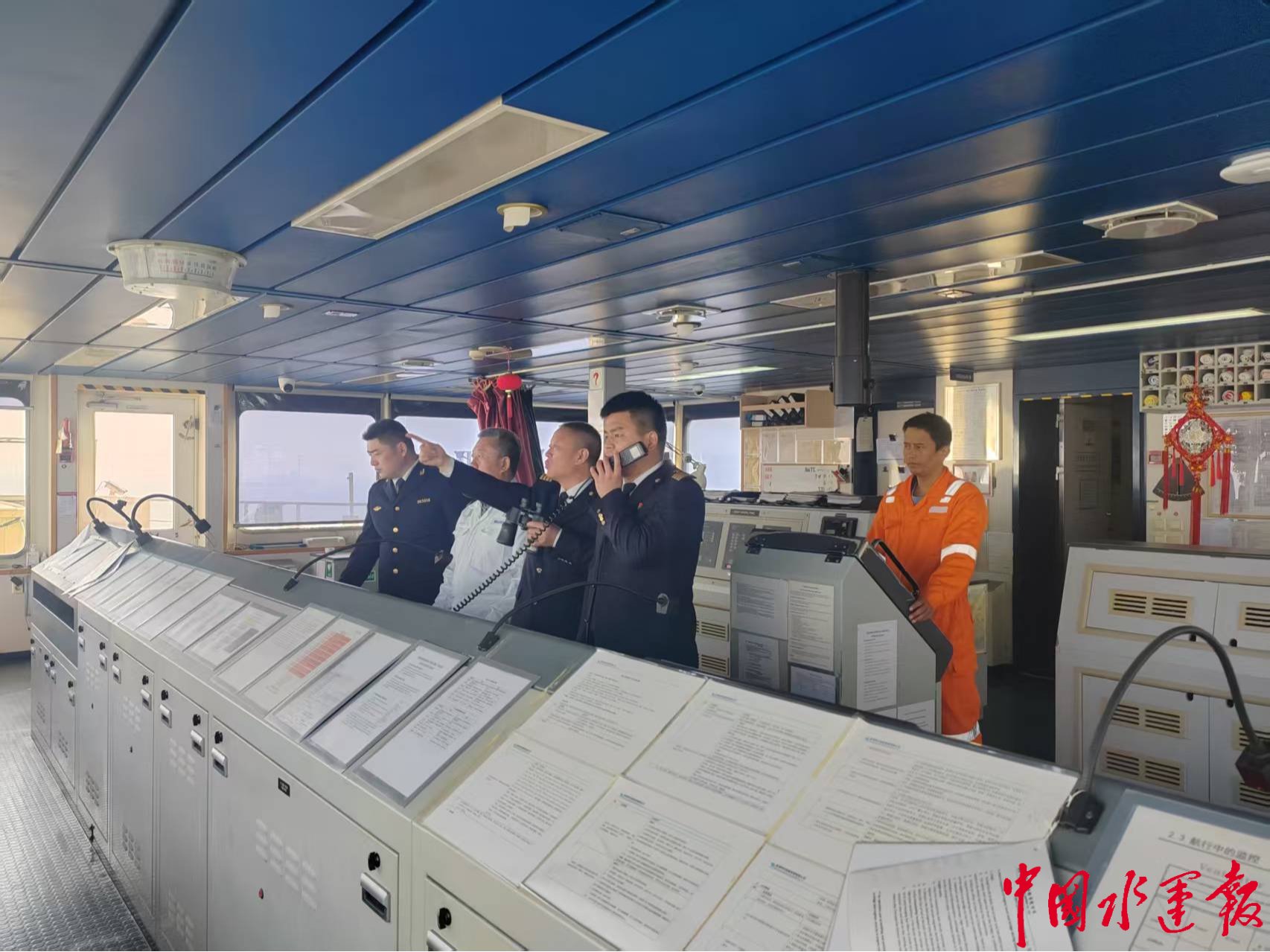 2月14日,田国义、夏伟忠等引航员在上海宝山登轮,连夜引领“大隋”轮航行至泰州锚地短暂休整。为最大程度节约船期,15日天色微亮,团队便抢抓平潮窗口期起锚续航。从吴淞口至镇江港的16小时航程中,引航团队与海事、港口等单位实时联动,实现引航、拖轮、维护艇无缝配合,以“引航先行、多方协同、全程保障”格局,确保船舶安全准时靠泊。
