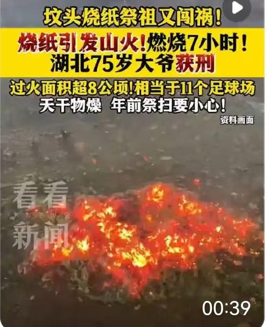 一把火烧掉的自由:湖北七旬老人祭祖获刑,别让“传统”成了“肇事”的借口 2025年的湖北鄂州,本该是一个寄托哀思、慎终追远的年份,却因为一场突如其来的山火,让一位75岁的退休职工站在了被告席上。这不是什么复杂的案件,但判决结果却足以让很多人警醒:有期徒刑六个月,缓刑一年。这背后,是长达7个小时的肆虐火势,更是对“小心火烛”这句老话最沉重的注脚。 事情发生在一个看似平常的祭祖日子。这位75岁的老大爷,按照流传下来的老规矩,在坟头焚烧火纸。或许在他看来,这只是尽一份孝心,是千百年来雷打不动的习俗。但他忽略了那个时间节点、那个地点周边的环境——干燥的野草。火苗窜起的那一刻,风向也许并不受控,那一沓沓火纸引燃的不仅仅是祭奠的心意,更是周边连片的枯草。 火势蔓延的速度远超老人的预料。这场山火一烧就是整整7个小时。这7个小时里,多少人力物力被动员,多少植被被焚毁,又有多少生态资源付之一炬?虽然没有具体列出过火面积的详细数据,但“持续7小时”这个时间量词,足以让我们想象当时火场的焦灼与失控。当大火终于被扑灭,等待老人的不是家族的赞许,而是冰冷的手铐和法律的制裁。 法院的判决非常明确,罪名是“失火罪”。很多人在评论区叫好,比如天津的网友“随缘自在eKT”就直言:“重罚,不要拿年龄和习俗说问题,犯错了就要承担后果。”这句话点到了痛处。在法律面前,75岁的高龄并不是免死金牌,所谓的“祭祖传统”更不能成为逾越法律红线的理由。刑法对于失火罪有着明确的规定,由于行为人的过失引起火灾,危害公共安全,造成严重后果的,就要承担刑事责任。这大爷虽然年事已高,但这绝不是可以疏忽大意的理由。 这起案件之所以引发热议,还在于它戳中了当前社会治理的一个痛点。每逢清明、冬至或是祭祖的日子,因烧纸引发的山火便层出不穷。有人觉得这是“孝道”,不该苛责;也有人如浙江网友“邱隘邱健”所言,抨击这是“愚昧无知”。其实,这未必纯粹是贫穷或落后的问题,更多的是一种观念的滞后。在森林防火高压线紧绷的今天,在生态文明建设日益深入人心的当下,表达哀思的方式早已应该更新迭代。一束鲜花、一杯清酒,甚至是一场云祭扫,难道不比漫天的烟尘和灰烬来得更清净、更文明? 判决结果中的“缓刑一年”,既体现了法律的威严,也兼顾了人道主义的考量。对于一位75岁的老人,实刑六个月的惩罚并不轻,这会在他的档案上留下永远无法抹去的污点,养老金、退休待遇恐怕也会受到波及。这代价,不可谓不沉重。 鄂州这起案例,其实是一堂生动且惨痛的法治公开课。它告诉我们,防火这根弦,任何时候都不能松。无论你是退休职工还是普通农民,无论你是七旬老翁还是年轻后生,在森林防火区违规用火,就是在拿自己的自由和公共安全做赌注。 别再拿“不知者无罪”来开脱,也别再抱着“烧点纸没事”的侥幸心理。当火纸点燃的那一刻,烧掉的不仅是杂草,可能还有你晚年的安稳。祭祖在心不在形,别让追思变成了“纵火”,别让那一捧灰烬,成了人生难以洗刷的遗憾。 以上内容仅供参考和借鉴