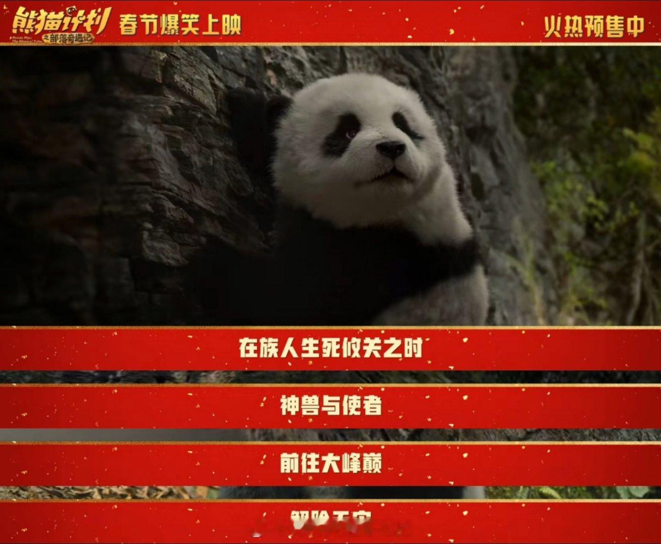 熊猫计划之部落奇遇记终极预告 春节看什么?当然是看我们国宝潘达啦!《熊猫计划之部落奇遇记》太适合咱们国人过年热热闹闹一起观看啦,🐼胡胡和成龙误入神秘部落,二人因部落传说被族人奉为“神兽”和“神兽使者”,爆笑不断,过年咱们就应该看点喜庆热闹的,不见不散哦!
