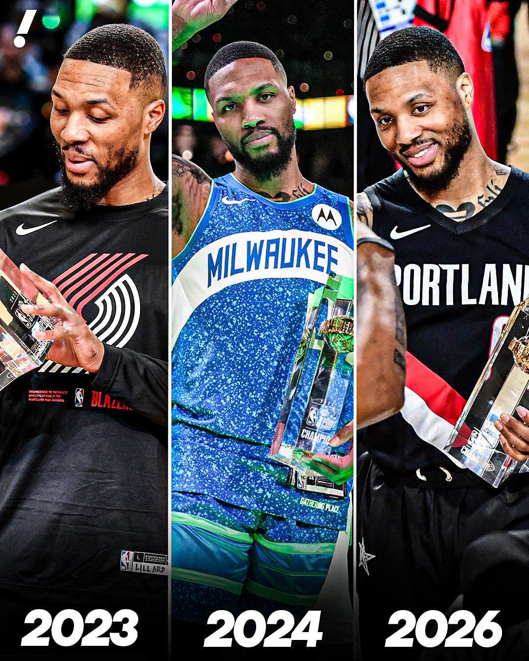 全明星三分大赛2026NBA全明星利拉德三分大赛三冠王利拉德复出即夺冠 利拉德四年三度夺得全明星三分王,追平拉里-伯德(1986-88 年)和克雷格-霍奇斯(1990-92 年),成为NBA历史第三位三分大赛三冠王!