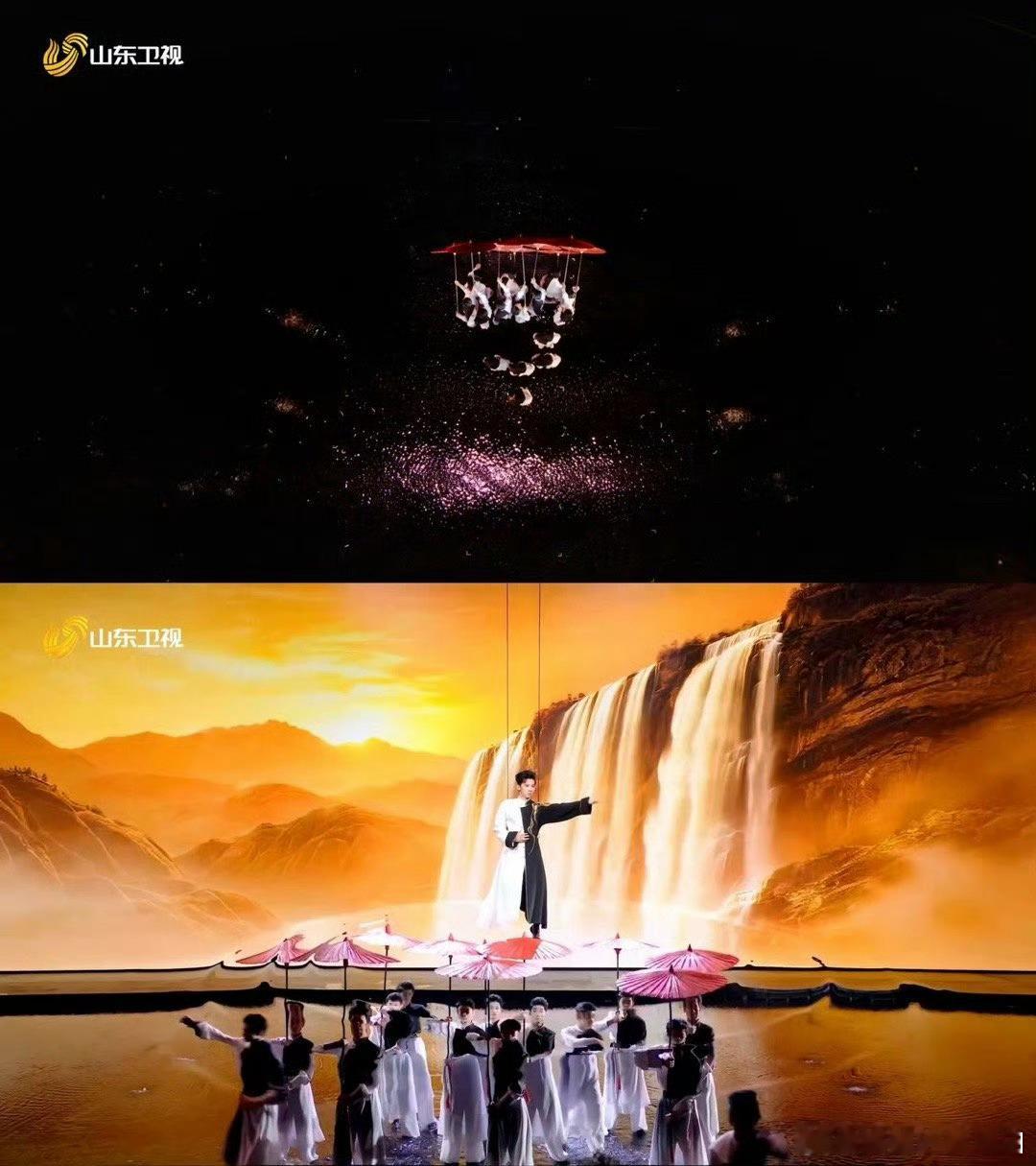 谁家春晚太极拳打出了裸眼3D感啊 必须是山东春晚《乾坤和韵》!太极遇上水舞台与吊威亚,红伞武者穿梭瀑布间,水墨特效加持,视觉效果拉满,解锁传统文化新形态。