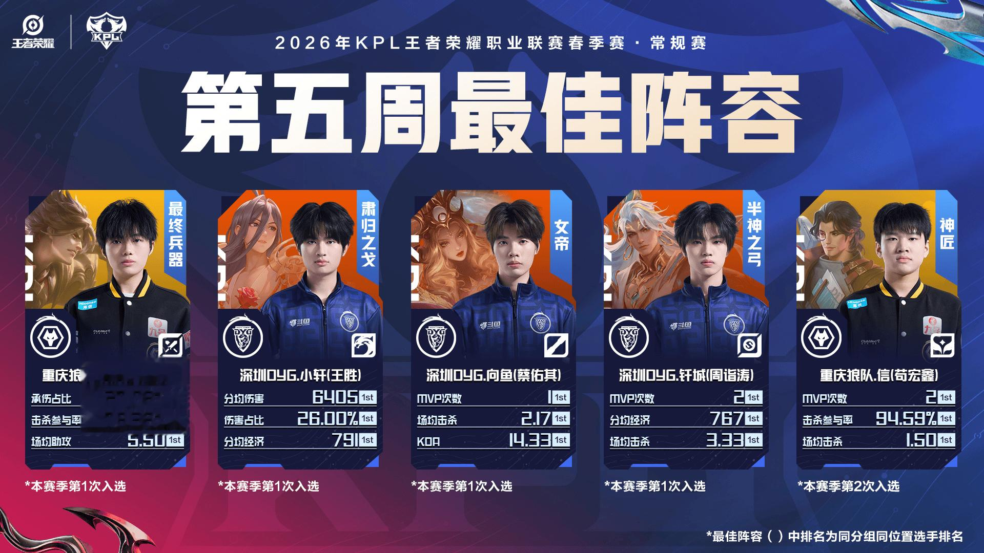 2026KPL春季赛[常规赛第五周最佳阵容]公布!