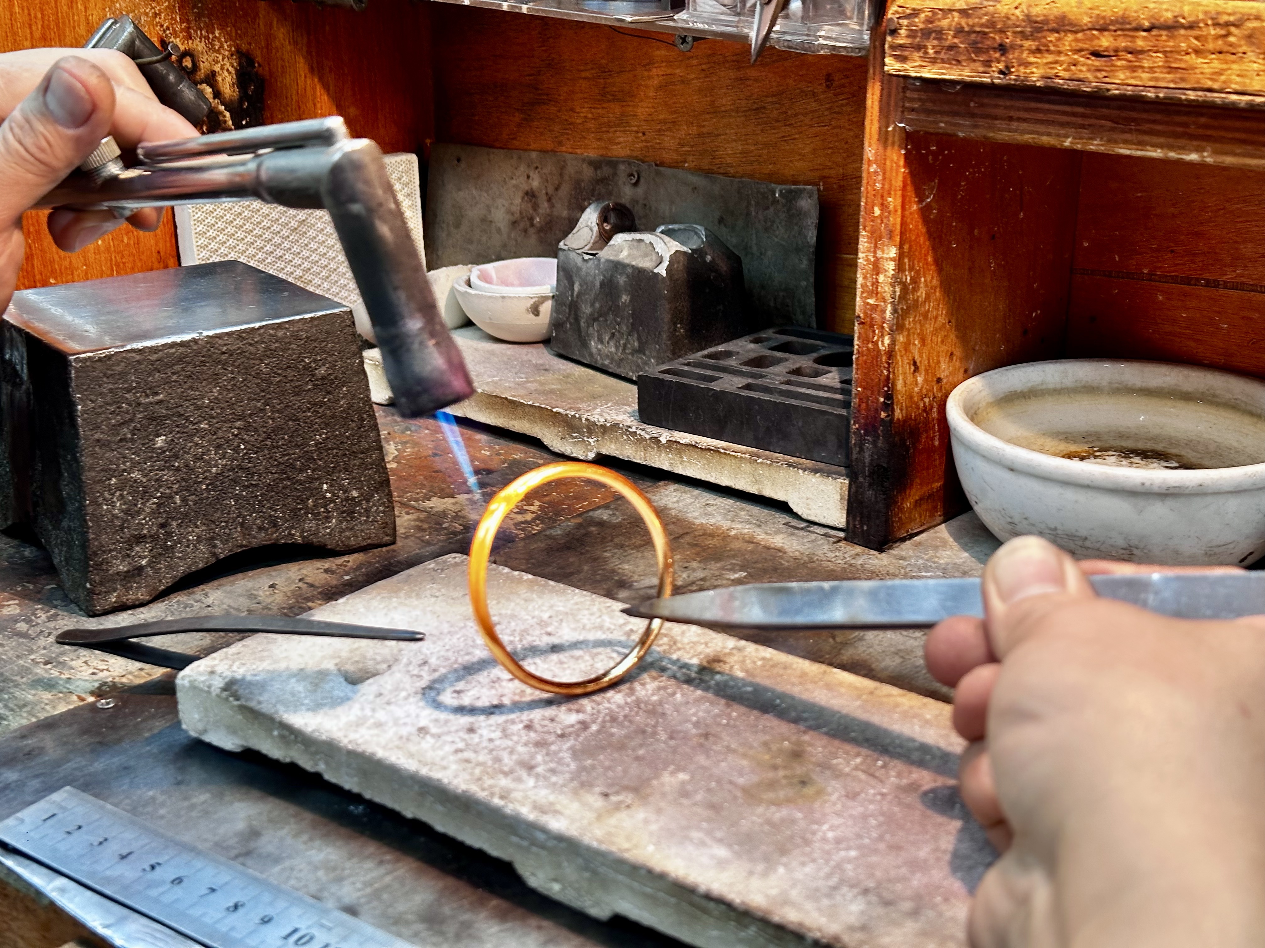 据此推算,顾客带100克足金在店内加工一只古法手镯,工费不会超过1000元。相较于周大福、老凤祥等传统金饰店的回收置换,打金成了一项极具性价比的选择。