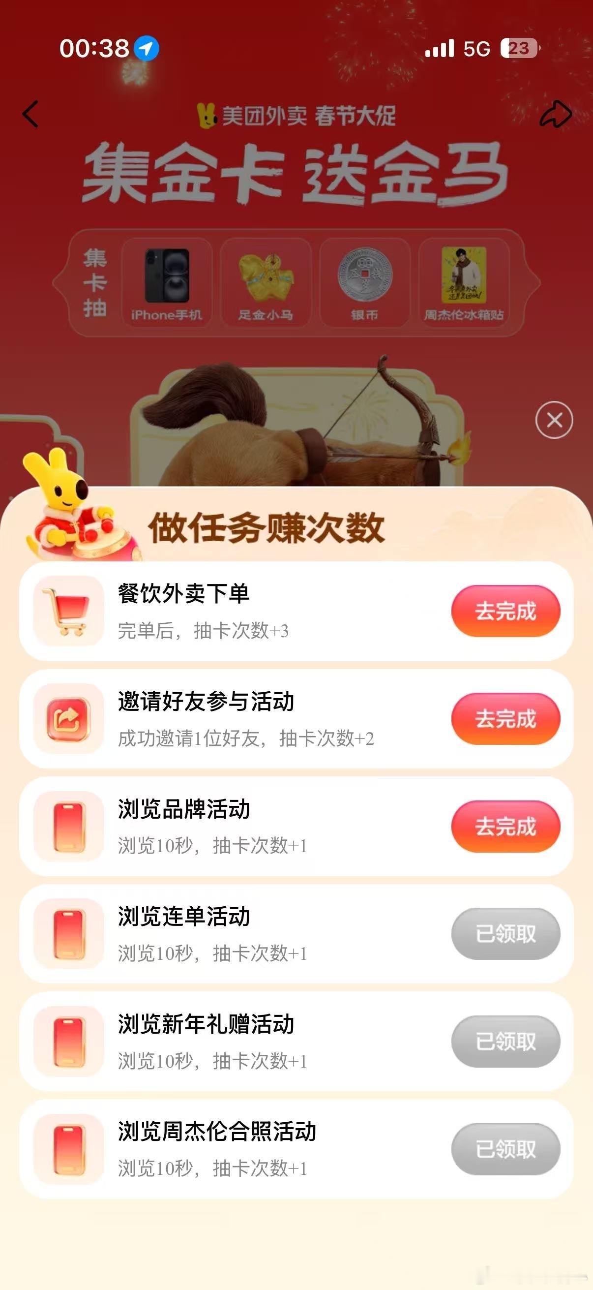 醒醒醒醒!!别刷别的了!!先把这个羊毛薅了再说!!美团外卖集金卡送金马这件事我已经喊到嗓子哑了!集齐福气卡合成【马上都有】金卡就有机会拿真!金!马!全程白嫖一分钱不花!我宁愿少吃一顿饭也要多集一张卡!上美团外卖App搜🔍【集金卡】你们再不动我真的要上门拉人了🚪美团外卖送金马啦